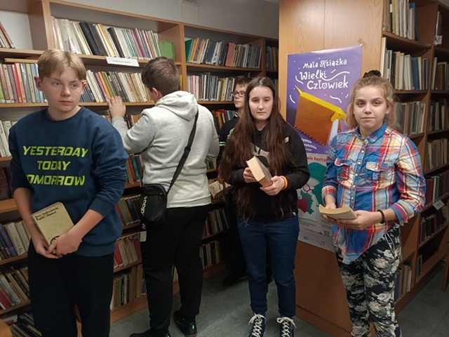 Dnia 15.listopada odbyło się pierwsze spotkanie naszych wolontariuszy w Miejsko- Gminnej Bibliotece Publicznej w Dobrodzieniu - Filia Myślina z bibliotekarką p. Beatą Nikolczuk . Uczniowie w ramach akcji będą porządkować księgozbiór i wyszukiwać najstarszych egzemplarzy książek. Kolejne spotkanie w następny poniedziałek.