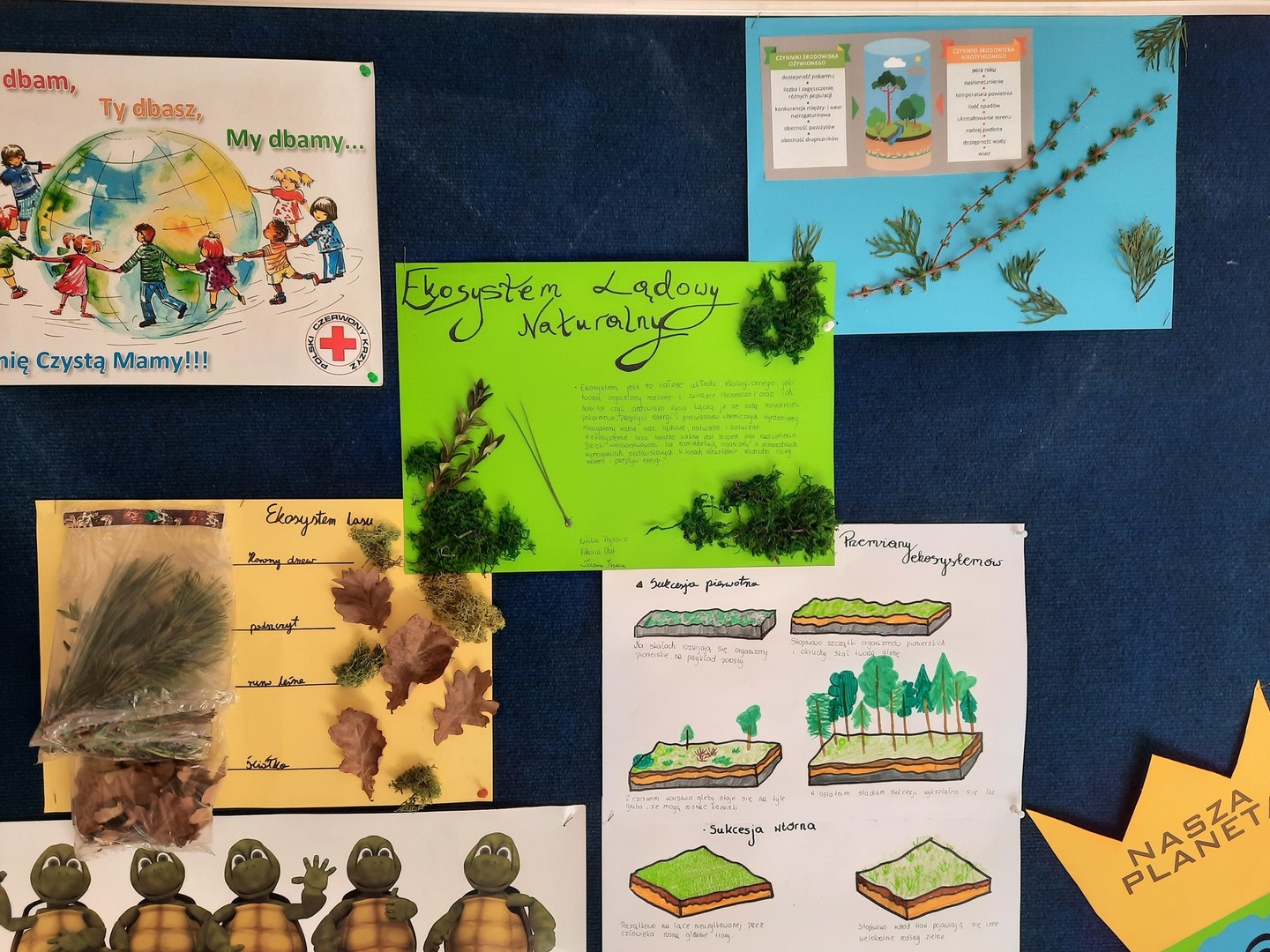Klasa 8a na temat: "Rodzaje ekosystemów i ich bioróżnorodność." Najlepszą pracę - plakat makietę dostarczono do Urzędu Miejskiego w Dobrodzieniu w ramach projektu Czysty Region na konkurs gminny i międzygminny "Bioróżnorodność wokół nas."