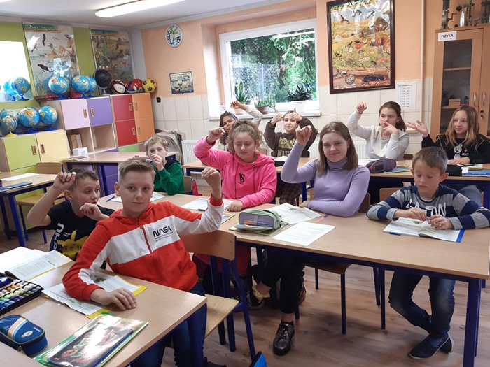 27 września uczniowie w klasie piątej na zajęciach mniejszości narodowej- języka niemieckiego z Panią Karoliną Skorupa-Niemasik, użyli lusterek do odczytania pisma lustrzanego. Lusterka ułatwiły im poprawne zapisanie zdań w języku niemieckim.