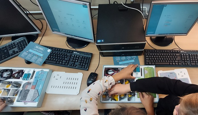 29 września uczniowie klasy 5 na dodatkowych zajęciach informatycznych z Panią Anną Kisielewicz zapoznali się z mikrokontrolerami w zestawie BeCreo.