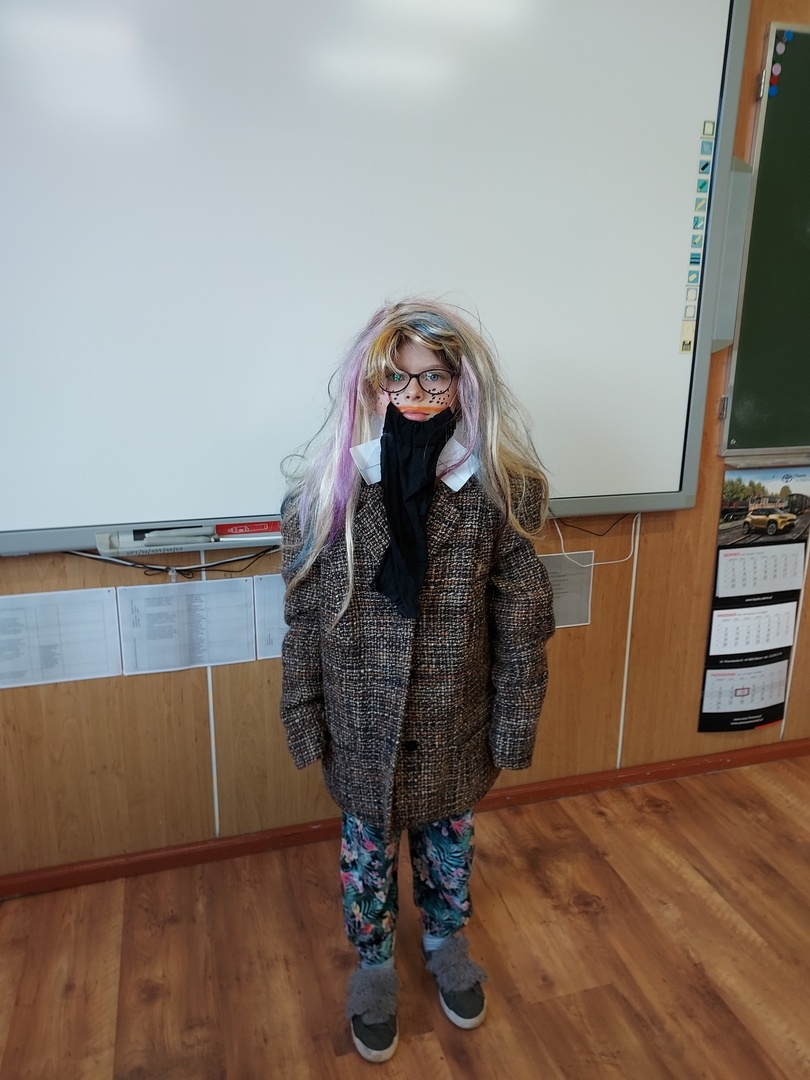 Tak naprawdę było to zadanie projektowe czwartoklasistów, którzy najpierw na podstawie lektury bardzo dokładnie opisali wygląd Ambrożego Kleksa, a następnie wiernie odtworzyli strój i cechy charakterystyczne postaci, wspaniale przygotowując kopię założyciela Akademii.