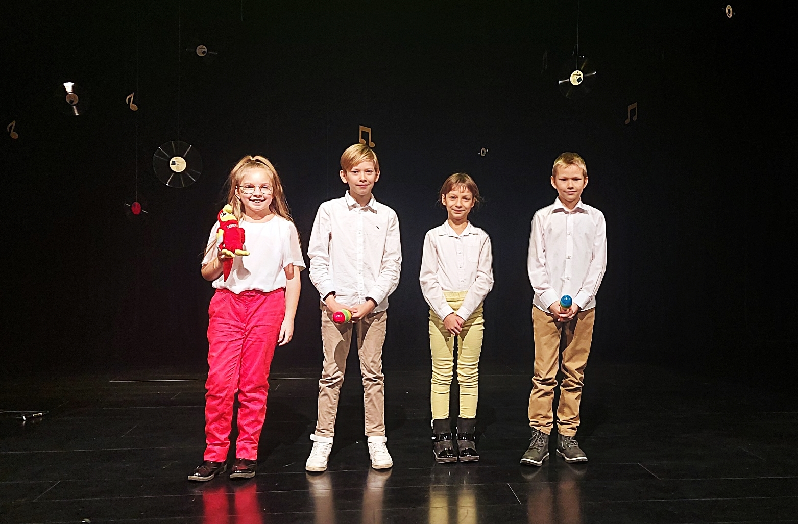 Zuzia,Marcel Z.,Lena i Szymon z klasy trzeciej wystąpili w kategorii zespoły.Sonia i Jagoda (klasa trzecia) oraz Sara i Oliwia (klasa czwarta) wystąpiły w kategorii duety.