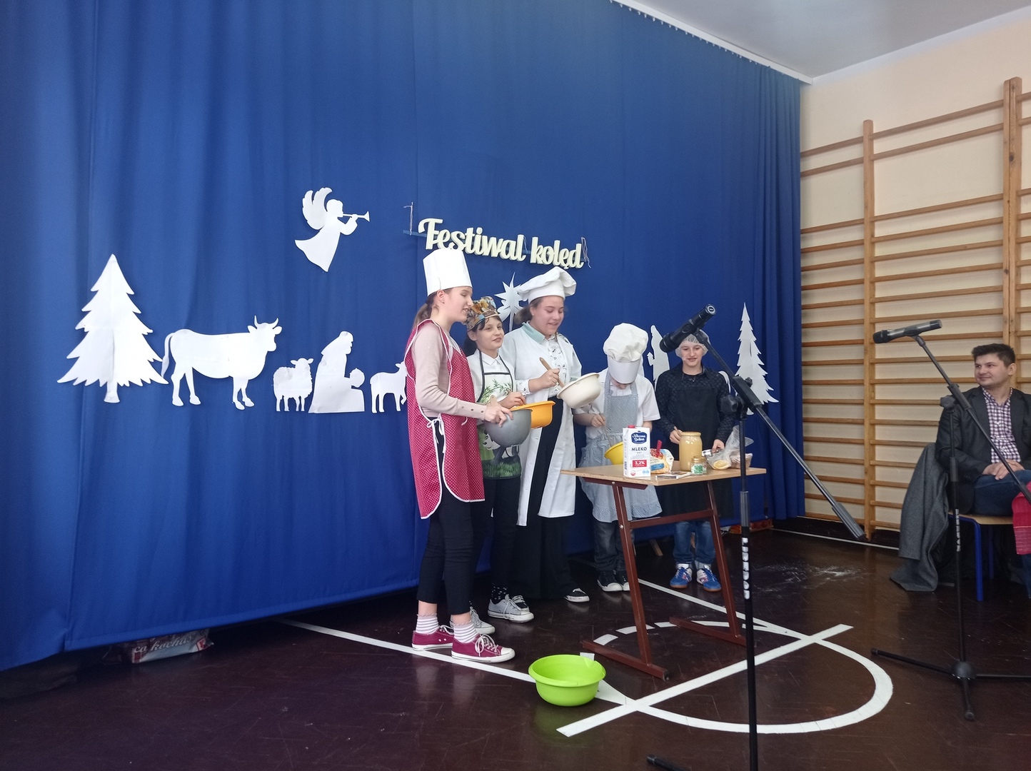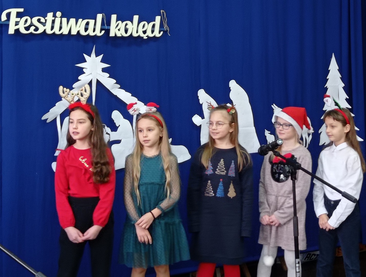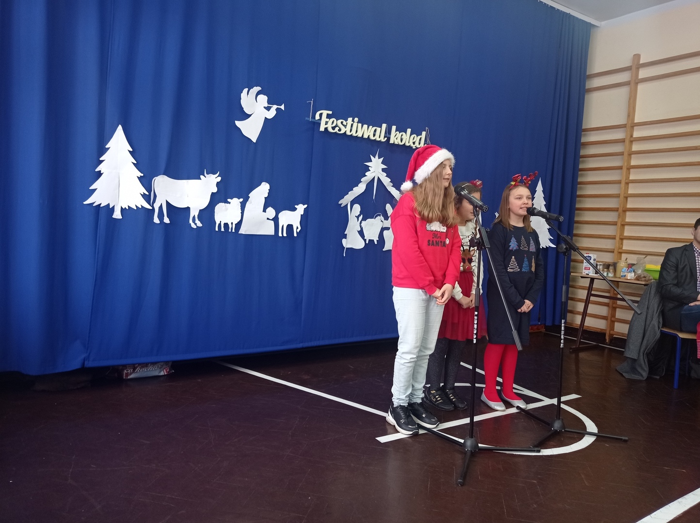 W środę 21.12.2022 odbył się w Naszej szkole już XXII festiwal kolęd. Uczniowie wszystkich klas prezentowali kolędy i świąteczne piosenki w języku niemieckim i angielskim. Zaproszeni goście, tj. przewodnicząca rady rodziców - p. Beata Jendrzej i sołtys - p. Rafał Chwalczyk wysłuchali wszystkich występów i wręczyli uczestnikom dyplomy.