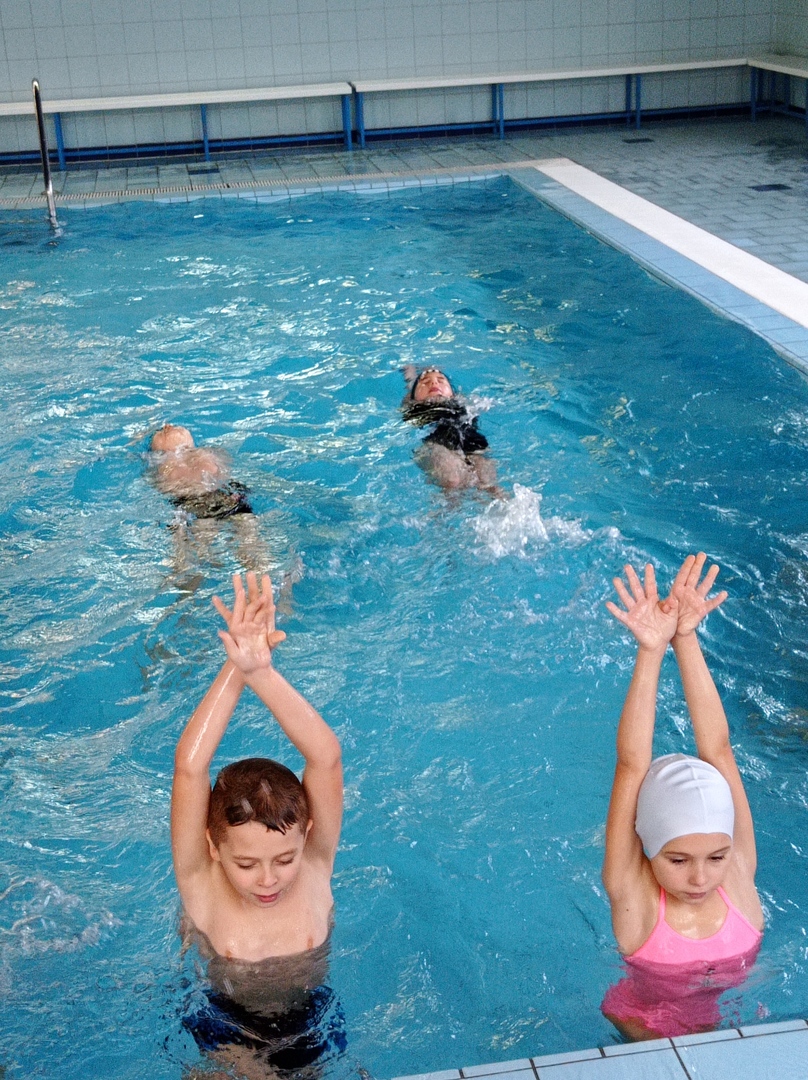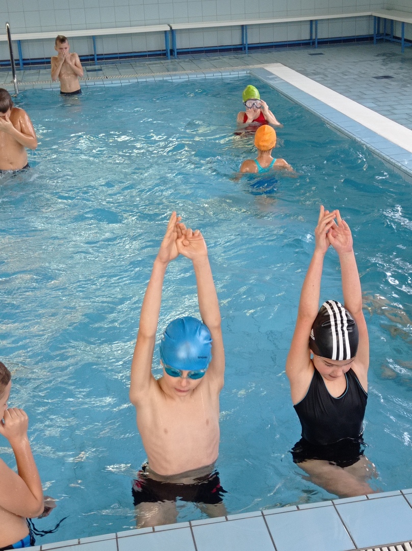 Przez prawie 8 tygodni - od 10 października do 28 listopada - uczniowie klasy trzeciej brali udział w programie Powszechna Nauka Pływania. Zajęcia odbywały się w poniedziałki i piątki na pływalni Delfin w Dobrodzieniu. Zajęcia prowadził trener p. Oleg Pyrog, który oswajał dzieci z wodą, uczył pływania strzałką i stylem grzbietowym oraz skakania do wody ze słupków. Dzieci chętnie uczestniczyły w tych zajęciach.