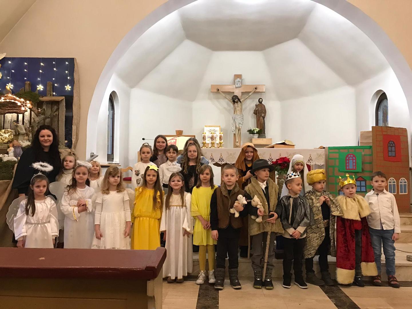 Zaprezentowane przez dzieci Jasełka były dla wszystkim niezwykłym przeżyciem. Dzieci swym pięknym występem zachwycili zgromadzoną w kościele publiczność. W przygotowanie strojów i dekoracji zaangażowali się rodzice za co bardzo dziękujemy.
