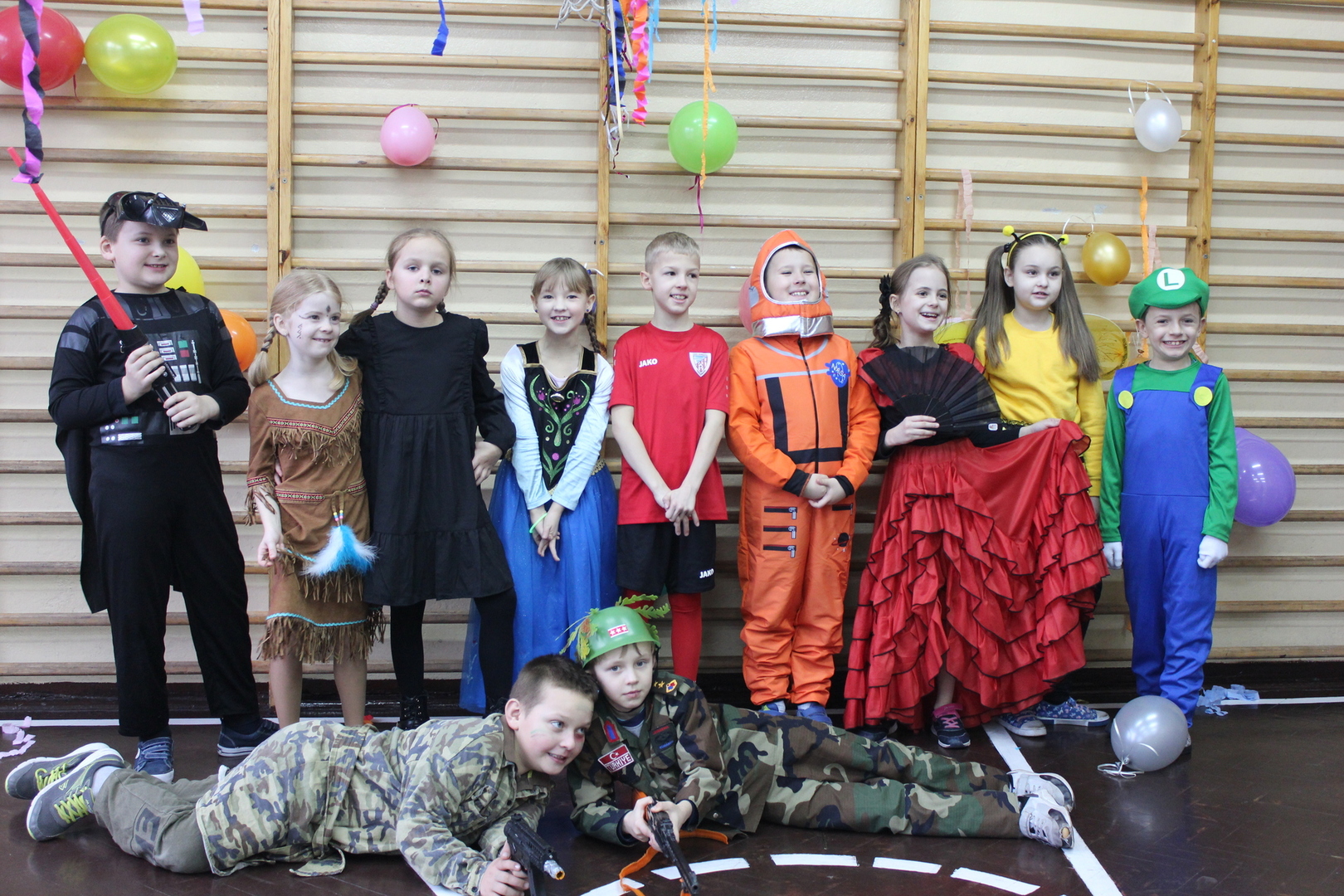 W czwartek 26 stycznia w naszej szkole odbył się karnawałowy bal przebierańców dla uczniów klas I - III. Na ten dzień sala gimnastyczna zamieniła się w salę balową, pięknie udekorowaną balonami, serpentynami i bibułą. W przygotowaniu dekoracji uczestniczyli zarówno uczniowie jak i nauczyciele. Uczniowie przybyli w pięknych i pomysłowych strojach, wcielając się w różne postacie, m.in: księżniczek, bajkowych bohaterów, sportowców, żołnierzy itp. Twarze niektórych uczniów ukryte były pod maskami, które sprawiły, że byli oni nie do poznania! Przy dźwiękach muzyki wszyscy bawili się doskonale. Były też przerwy na mały poczęstunek w klasach. Wspólna zabawa dostarczyła dzieciom wiele radości.