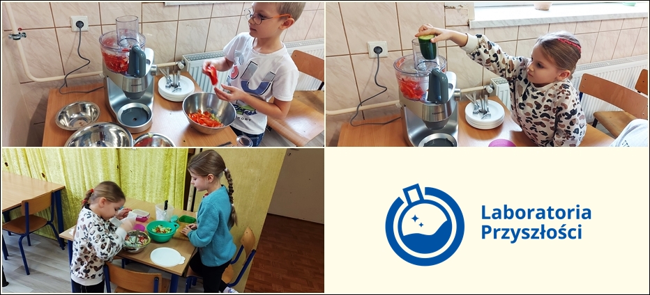 3 marca uczniowie klasy pierwszej na dwóch lekcjach edukacji wczesnoszkolnej przygotowywali sałatki wiosenne. Pomocny w tym okazał się zestaw misek metalowych oraz robot planetarny, który w mig pokroił wszystkie warzywa. Nauczyciel nadzorujący wykorzystanie sprzętu: R.Kurek