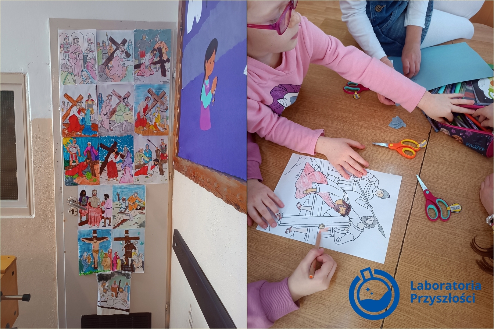6 marca podczas lekcji religii klasa druga wykorzystała nożyczki do stworzenia stacji Drogi Krzyżowej. Nauczyciel nadzorujący wykorzystanie sprzętu: W.Nieszporek