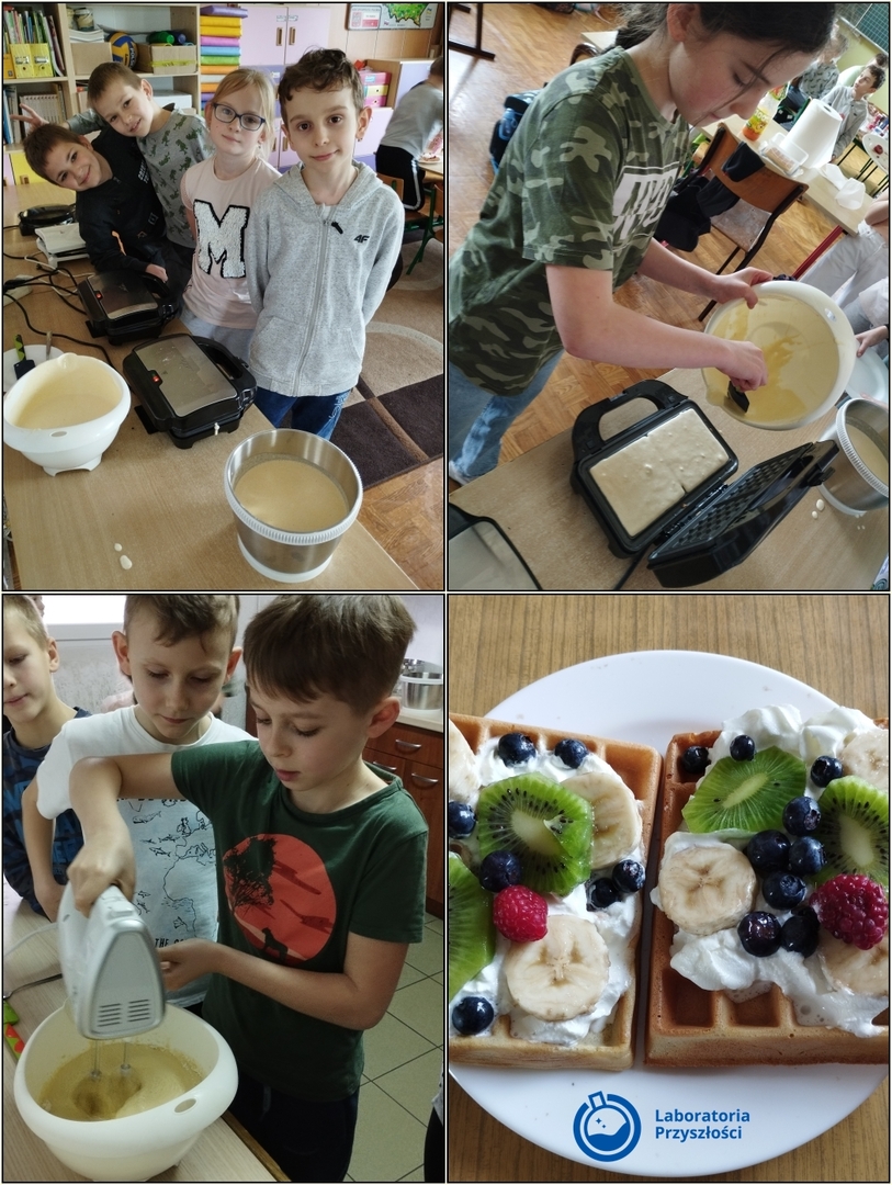 24 marca podczas trzech godzin zajęć zintegrowanych uczniowie klasy trzeciej upiekli gofry i przygotowali dodatki do gofrów – wykorzystywali opiekacze 4 w 1 (z wkładkami do gofrów), mikser ręczny z misą oraz zestaw misek do mieszania zakupionych w ramach programu „Laboratoria Przyszłości”. Nauczyciel nadzorujący wykorzystanie sprzętu: D.Leja