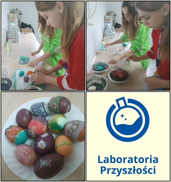 31 marca uczniowie klasy szóstej i siódmej podczas lekcji religii ozdabiali jajka wielkanocne, które są symbolem życia. Prace wyróżniają się dużą inwencją twórczą i pomysłowością, a do ich wykonania dzieci użyły misek zakupionych w ramach programu „Laboratoria Przyszłości”. Nauczyciel nadzorujący wykorzystanie sprzętu: W. Nieszporek