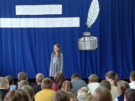 05 kwietnia 2023r. odbył się Szkolny konkurs recytatorski. Konkurs, który ma swoich szczególnych wielbicieli w klasach najmłodszych, był pierwszym etapem turnieju „Wierszem i prozą”. Na scenie zaprezentowali się chętni uczniowie, którzy przygotowali recytacje wierszy polskich poetów. Jury w składzie pani Beata Nikolczuk, pani Renata Kudełka i pan Rafał Chwalczyk po wysłuchaniu wszystkich recytatorów z trzech kategorii wiekowych postanowiło przyznać:
