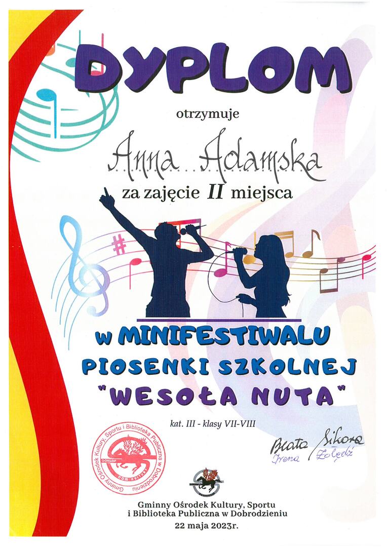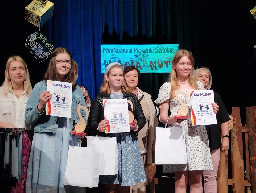 22 maja trzy uczennice klasy trzeciej oraz dwie ósmoklasistki reprezentowały naszą szkołę na Minifestiwalu Piosenki Szkolnej "Wesoła nuta" organizowanym przez Gminny Ośrodek Kultury, Sportu i Bibliotekę Publiczną w Dobrodzieniu.