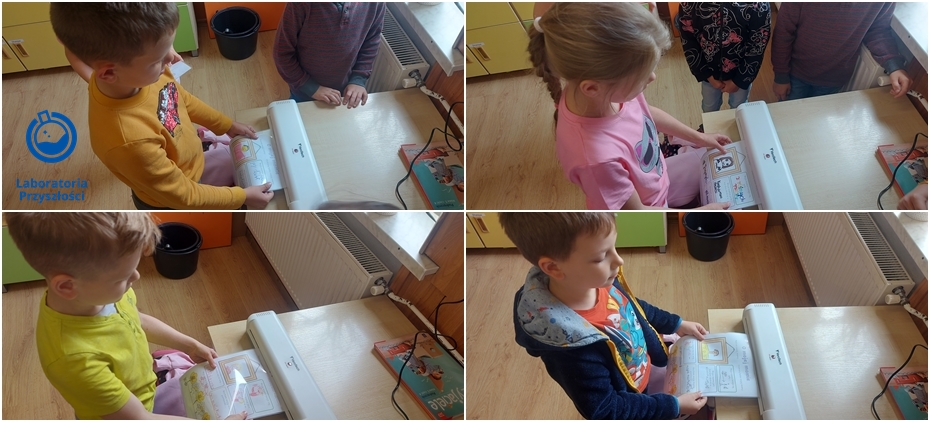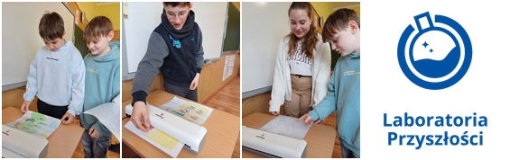 15 i 16 maja uczniowie klasy szóstej przygotowali opowiadania z ilustracjami na podstawie lektury "Ania z Zielonego Wzgórza" do teatrzyku Kamishibai. Aby karty były trwałe i można je było wykorzystać w późniejszym czasie, szóstoklasiści użyli laminatora zakupionego w ramach programu Laboratoria Przyszłości. Nauczyciel nadzorujący wykorzystanie sprzętu:A.Chyla.