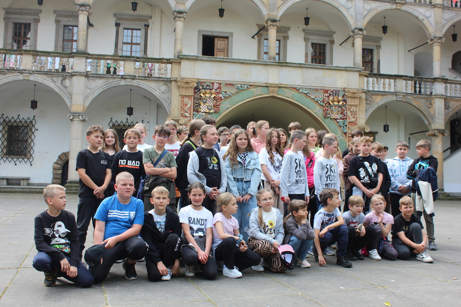 6 maja uczniowie klas III-VIII udali się na wycieczkę do Wrocławia. W drodze do stolicy Dolnego Śląska zatrzymaliśmy się w Brzegu, aby zobaczyć Zamek Piastów Śląskich, nazywany Śląskim Wawelem. Największe wrażenie zrobiła na nas brama wjazdowa z portalem z popiersiami królów i książąt w Zamku w Brzegu.