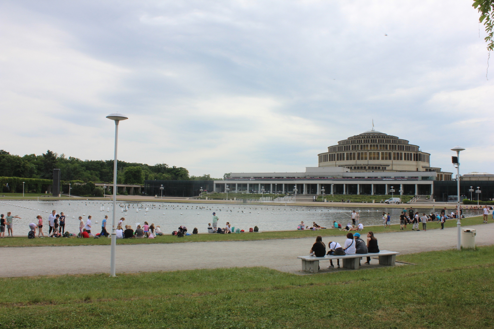 Spacerem przeszliśmy przed Halę Stulecia – jedyny wrocławski obiekt wpisany na Listę Światowego Dziedzictwa UNESCO – oraz słynną 90-metrową Iglicę.