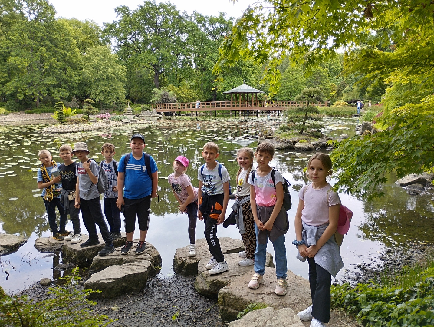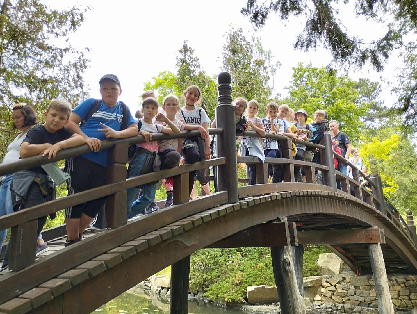 Następnie zacieniona pergola zaprowadziła nas do Ogrodu Japońskiego. Urocze alejki, różnorodna roślinność, malownicze zakątki, japońskie budowle małej architektury ogrodowej, kamienne ozdoby oraz wodne kaskady pozwoliły wszystkim nieco odpocząć.