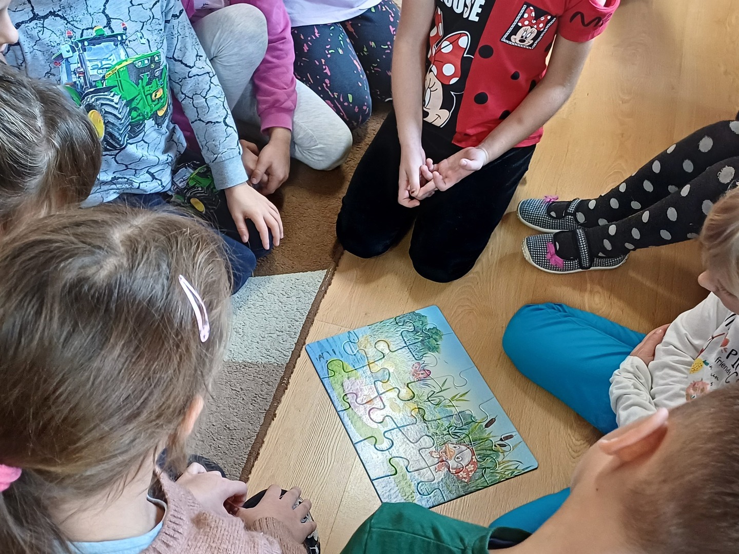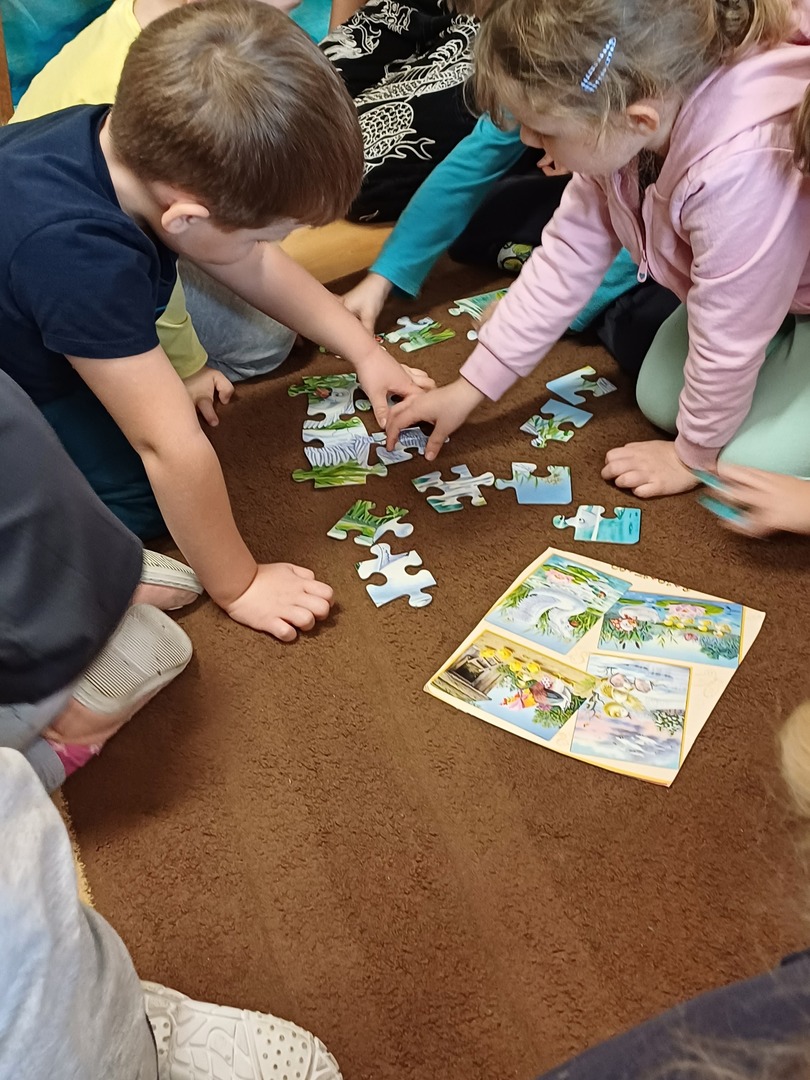 Po czytaniu zaprosiłyśmy przedszkolaków do zabawy, m.in. do układania puzzli o brzydkim kaczątku.