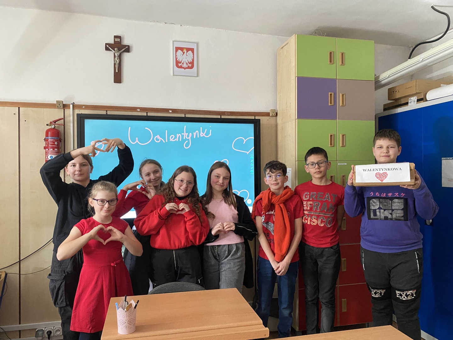 Walentynki to święto zakochanych i zaprzyjaźnionych. Z tej okazji Samorząd Uczniowski zorganizował pocztę walentynkową. Uczniowie, którzy chcieli przekazać życzenia swoim sympatiom, kilka dni wcześniej wrzucali własnoręcznie wykonane serduszka i kartki walentynkowe do specjalnie przygotowanej skrzynki. Poczta cieszyła się ogromnym zainteresowaniem. Nie zabrakło też wyrazów sympatii pod adresem nauczycieli. Wszyscy odbiorcy byli mile zaskoczeni. Podczas Walentynek uczniowie i nauczyciele ubrali się w czerwono-różowe stroje. Niepowtarzalna atmosfera szkolnych walentynek pozostanie z pewnością na długo w pamięci wszystkich uczniów i nauczycieli.