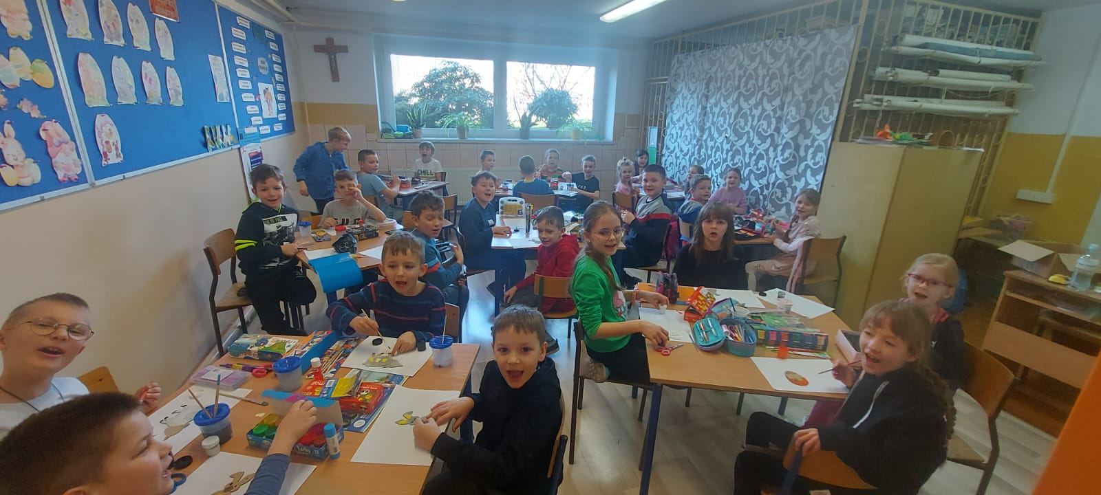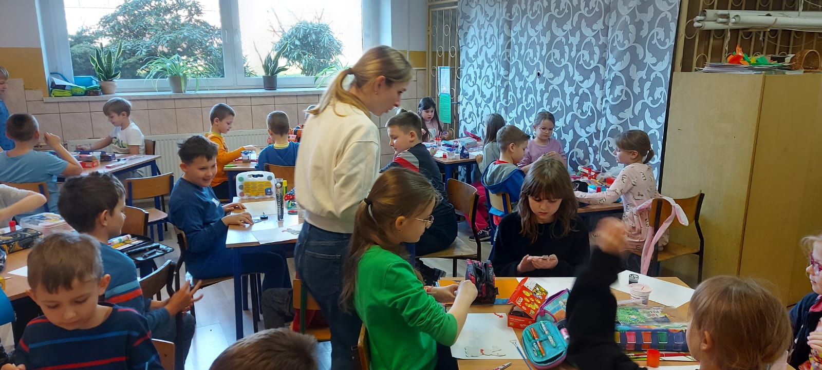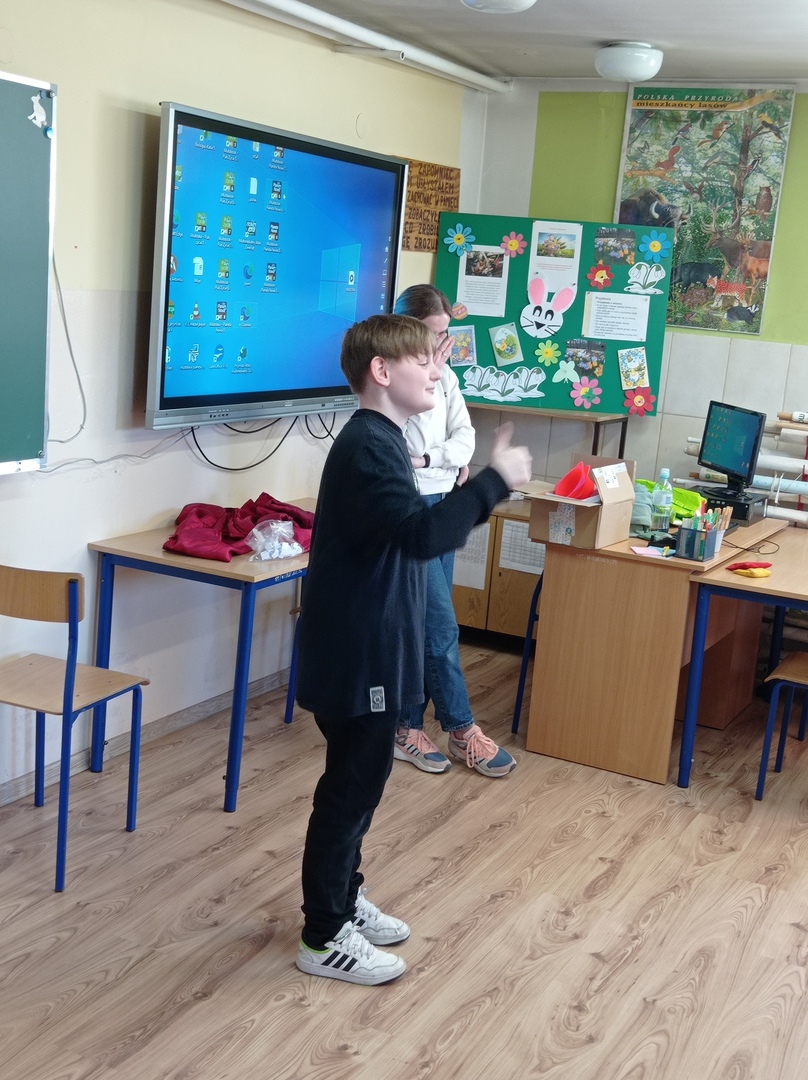 We wtorek, 26. marca Naszą szkołę odwiedziła pani Renata Kudełka, miejscowa bibliotekarka. Pani Renata przygotowała dla dzieci wierszyki z zagadkami Wielkanocnymi oraz zajęcia plastyczne dla uczniów z klas 1-6. Uczniowie mogli ozdabiać farbami, mazaki lub koralikami symbole Wielkanocne - króliczki, baranki i pisanki. Uczniowie klasy 7-8 również rozwiązywali zagadki Wielkanocne, ale w nieco innej formie, ponieważ podzieleni na dwie drużyny (dziewczyny kontra chłopcy) grali w kalambury.