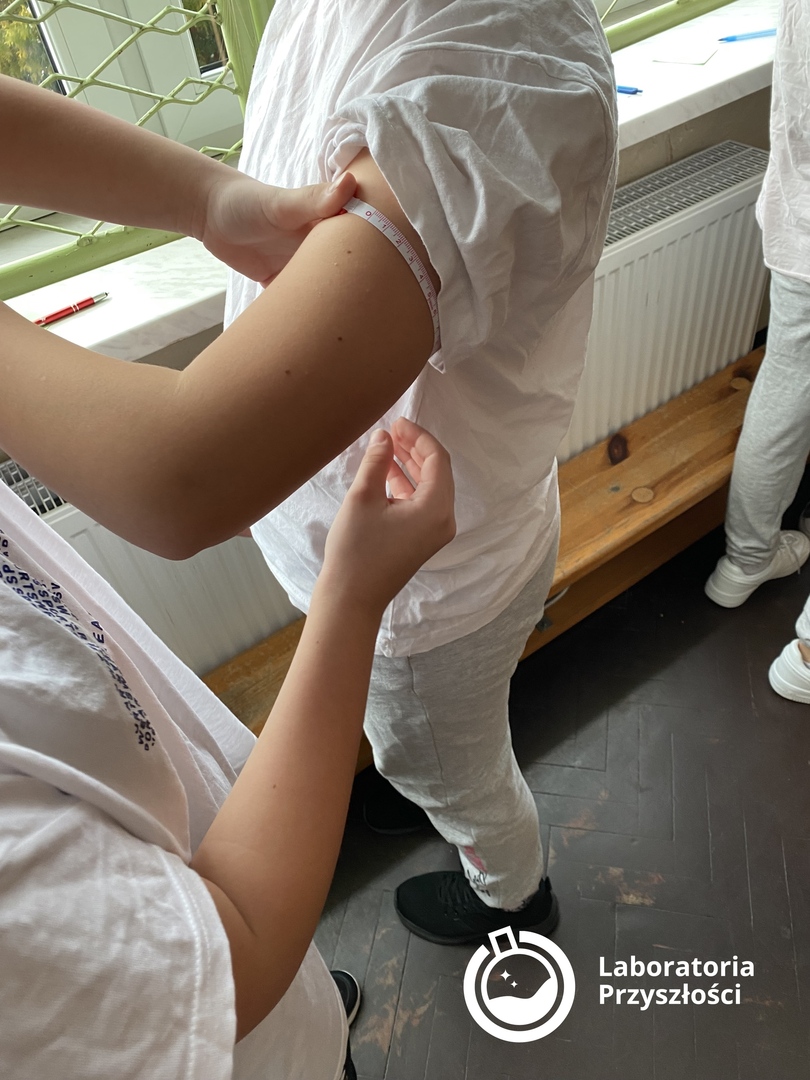 20 marca uczniowie klasy ósmej na zajęciach z wychowania fizycznego wykorzystali taśmy mierniczej do mierzenia obwodu klatki piersiowej, ud oraz ramion. ( P.Dudarewicz)
