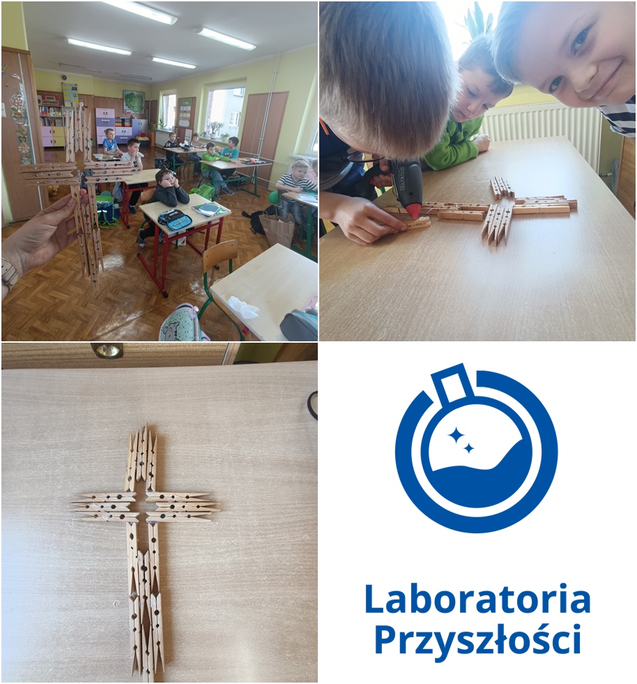 4 marca klasa druga podczas lekcji religii stworzyła krzyż. Temat ukrzyżowania, cierpienia jest trudny dla dzieci a prace plastyczne ułatwiają rozmowę i otwierają. Dlatego postanowiliśmy się podjąć wyzwania i stworzyć krzyż z drewnianych klamerek używając kleju na gorąco. (W.Nieszporek)