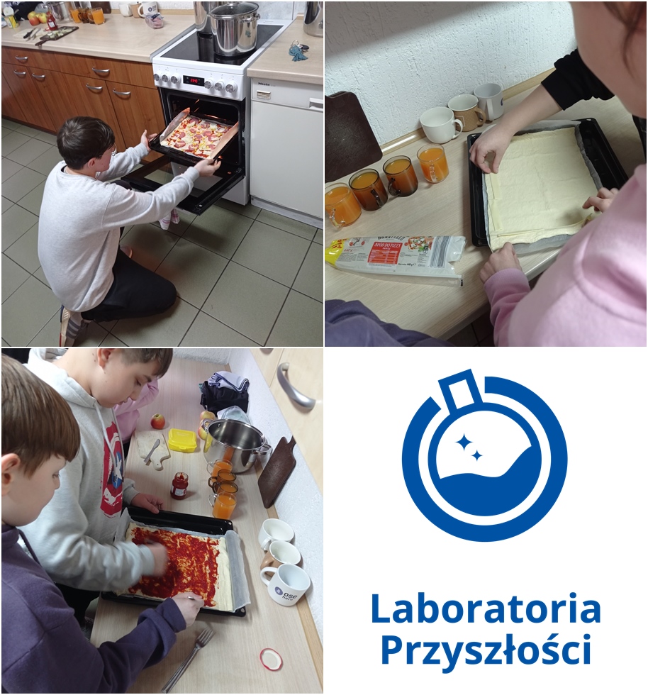 Z okazji Dnia Pizzy uczniowie klasy siódemj na zajęciach z wychowawcą przygotowali i upiekli przepyszna pizzę z serem w brzegach. Wykorzystaliśmy kuchenkę elektryczna z płytą ceramiczną FSL57300GW zakupioną w ramach Laboratoriów Przyszłości. (J. Kłopotowska)