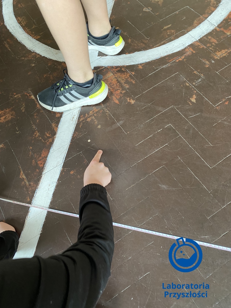 Uczniowie klasy szóstej 22 marca na lekcji wychowania fizycznego korzystali z taśmy mierniczej do mierzenia długości oddanego skoku w dal. ( P.Dudarewicz)