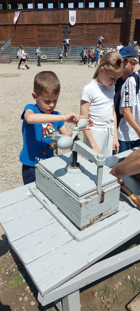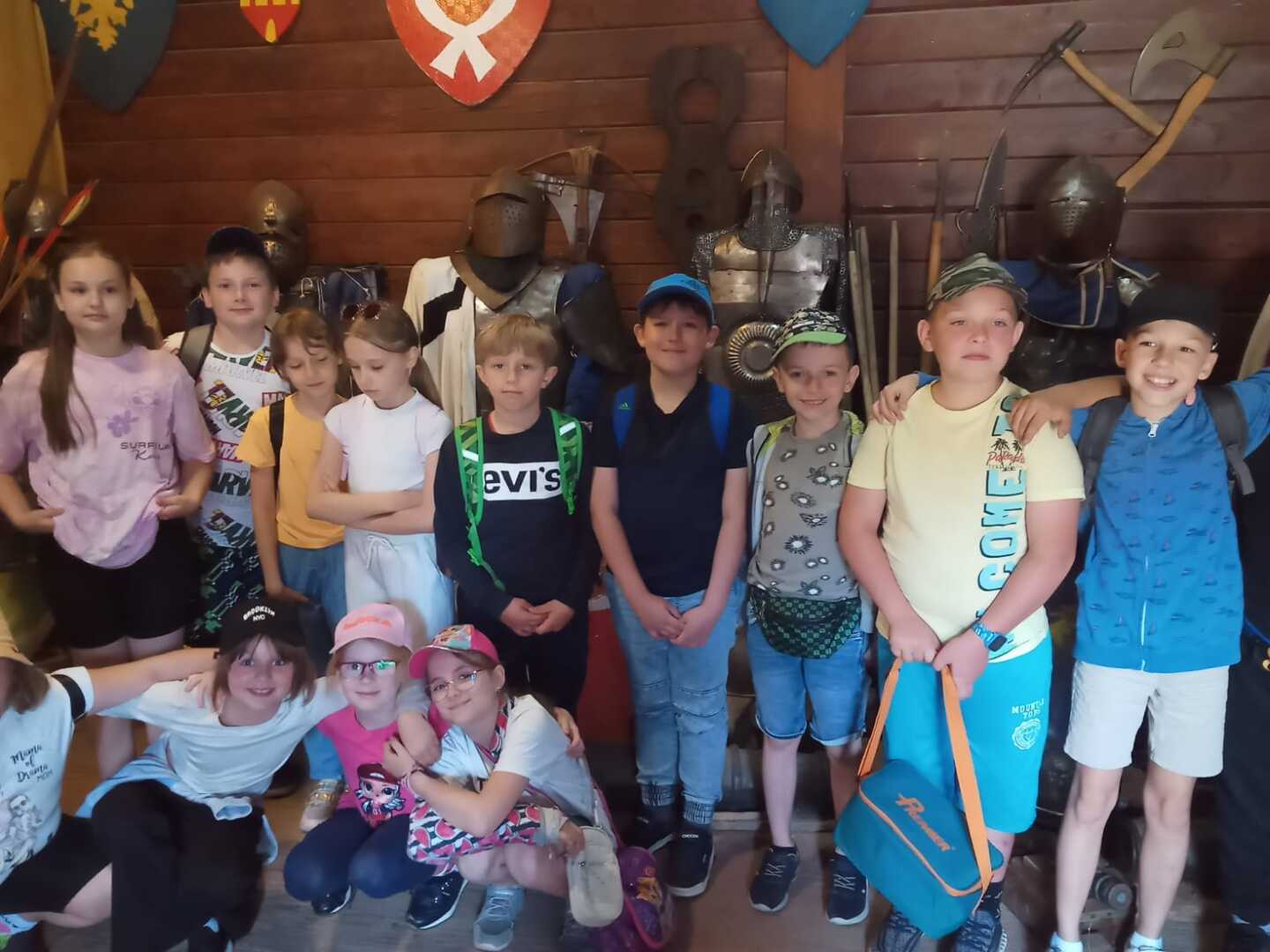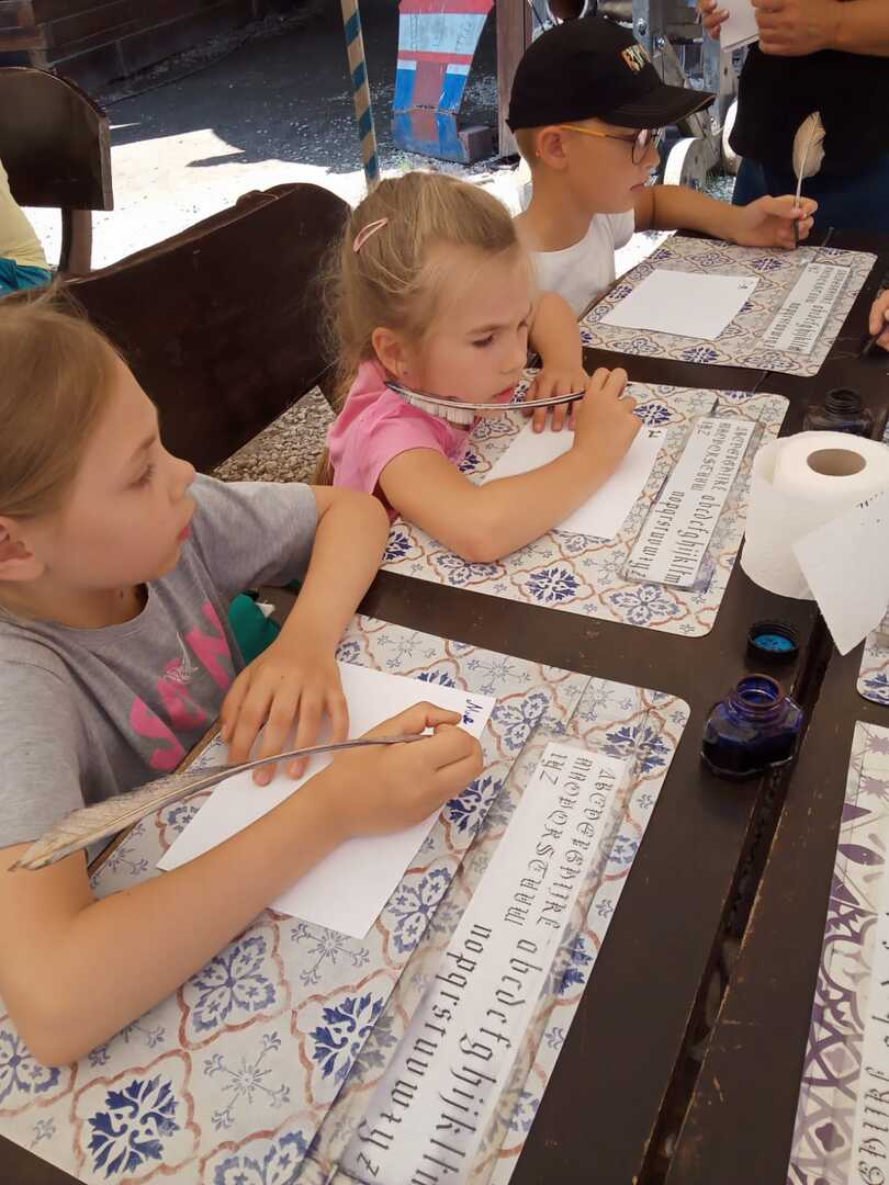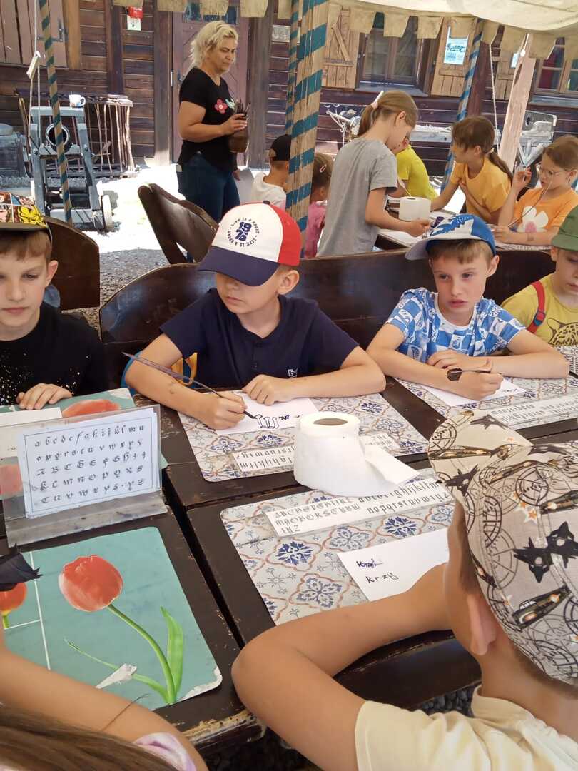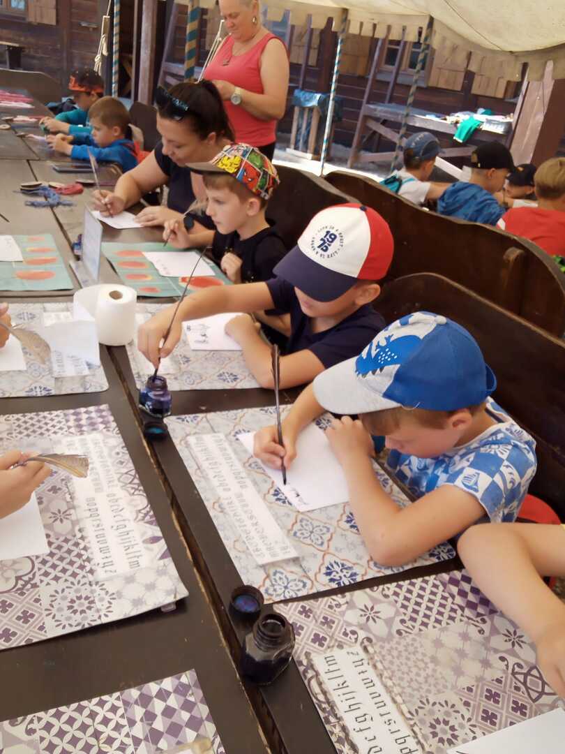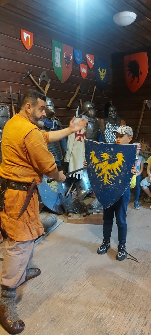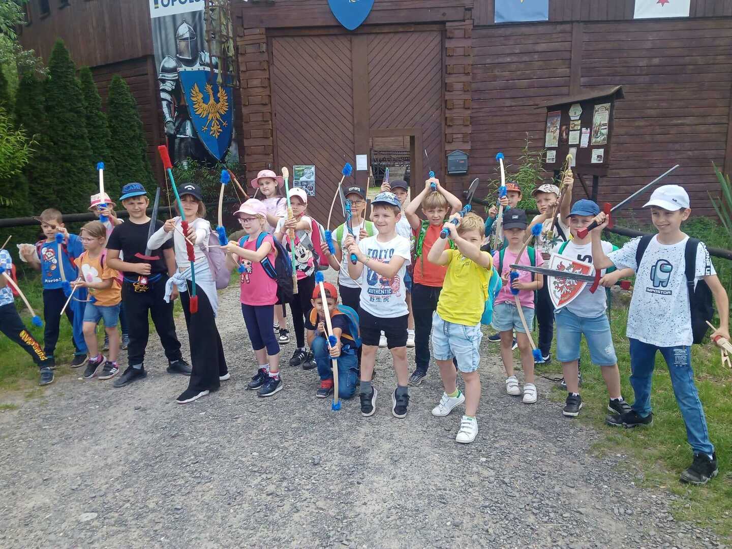 W dniu 5.06.24 klasy 1-3 odwiedziły Gród Rycerski w Byczynie. Uczniowie poznawali zwyczaje i tradycje średniowiecznego grodu, a także podziwiali piękno okolicy w czasie przejażdżki bryczką. W trakcie wycieczki zobaczyli też zbrojownię, gdzie duże zainteresowanie wzbudziły zbroje rycerskie, miecze, halabardy, kusze. Dzieci uczestniczyły w ciekawych warsztatach nauki pisania gotyckich liter gęsim piórem, wykonania własnoręcznie powrozów, czy czerpania papieru. Każdy mógł spróbować swoich sił w strzelaniu z łuku i celności w rzutach do tarczy toporkami. Na koniec uczniowie odwiedzili sklepik z pamiątkami, w którym po wcześniejszych próbach łuczniczych największym powodzeniem cieszyły się łuki.