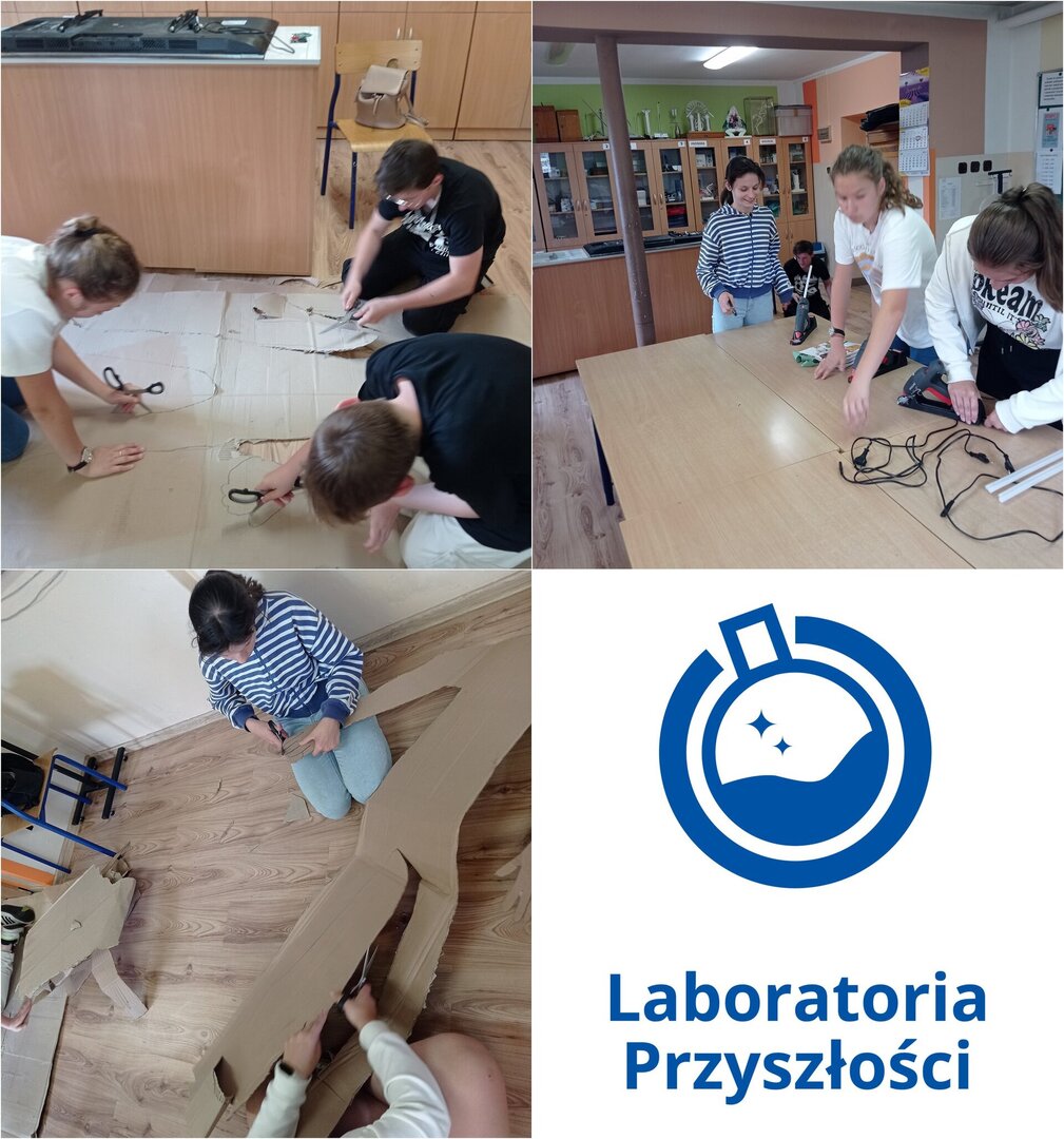 7 czerwca uczniowie wykorzystali do wykonania kartonowych postaci kleje na gorąco oraz nożyczki zakupione w ramach laboratoriów przyszłości. (J.Kłopotowska)