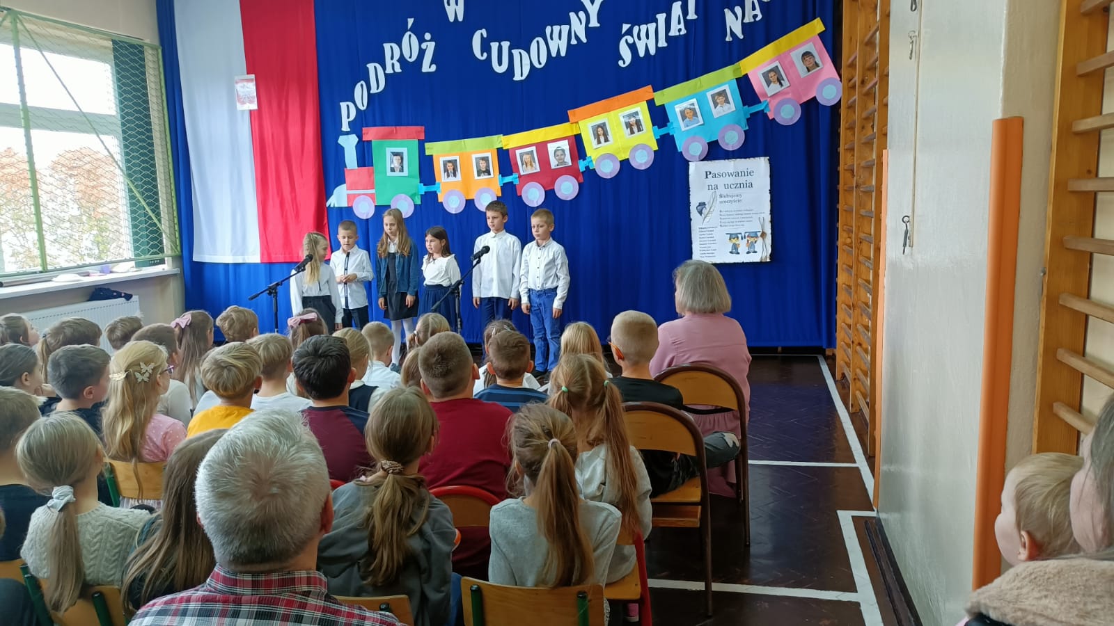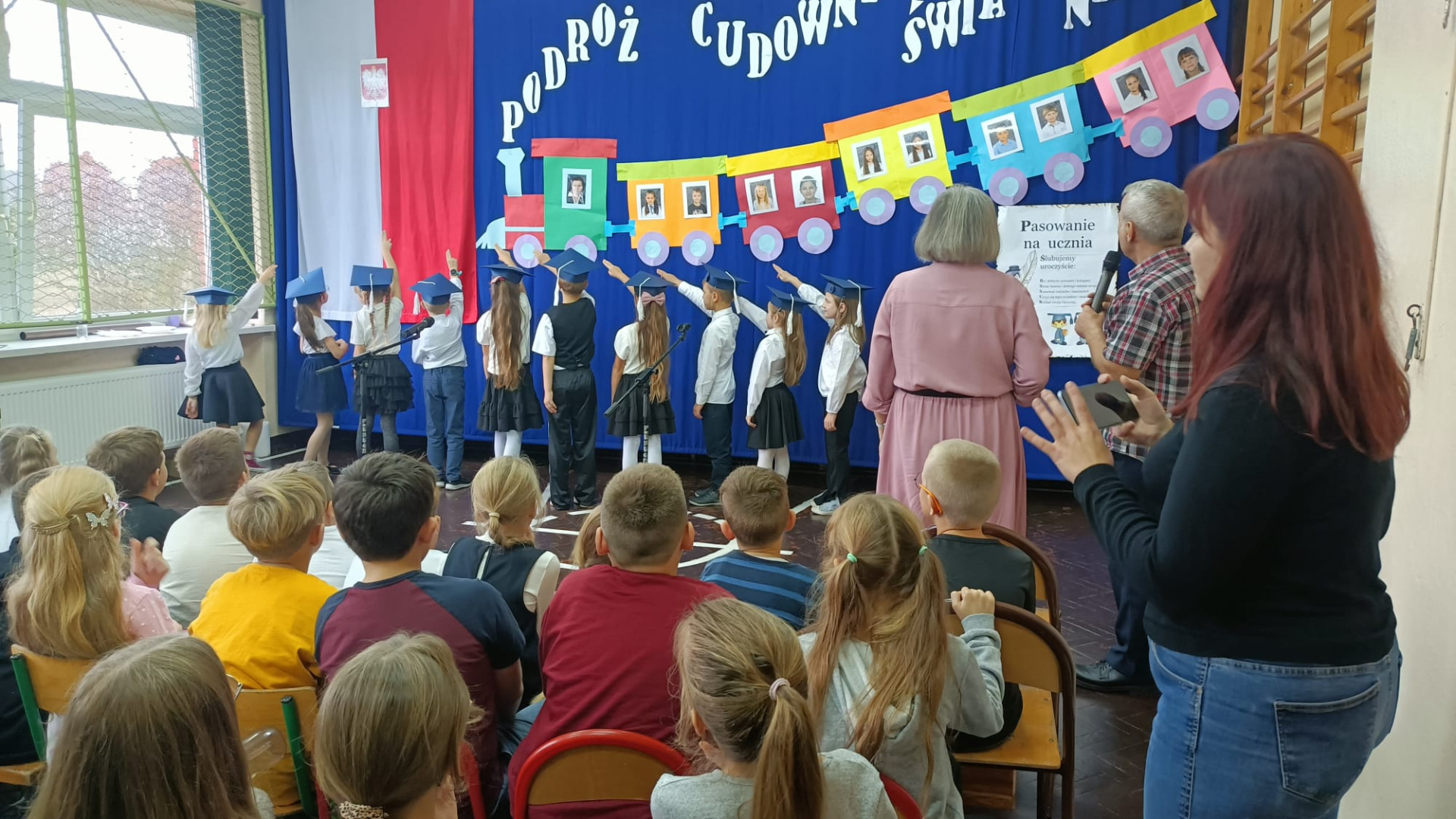 30 października 2024 r. odbyła się w naszej szkole uroczystość pasowania na ucznia. Jest to szczególny dzień, który na długo pozostanie w pamięci każdego ucznia klasy pierwszej. W tym dniu dzieci oficjalnie przyjęte zostały do grona uczniów szkoły. Podczas uroczystości pierwszoklasiści pokazali, że potrafią pięknie śpiewać i recytować wiersze. Zaprezentowali wiedzę o właściwym zachowaniu się w szkole, o bezpieczeństwie w ruchu drogowym. Zadeklarowali chęć do nauki oraz przedstawili swe marzenia na przyszłość. Podczas występu zaprezentowali układy taneczno- rytmiczne. Najważniejszą częścią uroczystości, na którą wszyscy czekali było ślubowanie oraz pasowanie wielkim ołówkiem przez Pana Dyrektor Szkoły. Pierwszaki głośno i z przekonaniem przyrzekały być dobrymi i pilnymi uczniami oraz rzetelnie wypełniać swoje obowiązki. Uczniowie klasy drugiej przygotowali program, w którym piosenkami i wierszykami wspierali młodszych kolegów i koleżanki. Na pamiątkę tego wydarzenia pierwszoklasiści dostali upominki od klasy drugiej. Uczniowie otrzymali również pamiątkowe dyplomy i legitymacje szkolne. Po uroczystości odbyło się sympatyczne słodkie spotkanie.