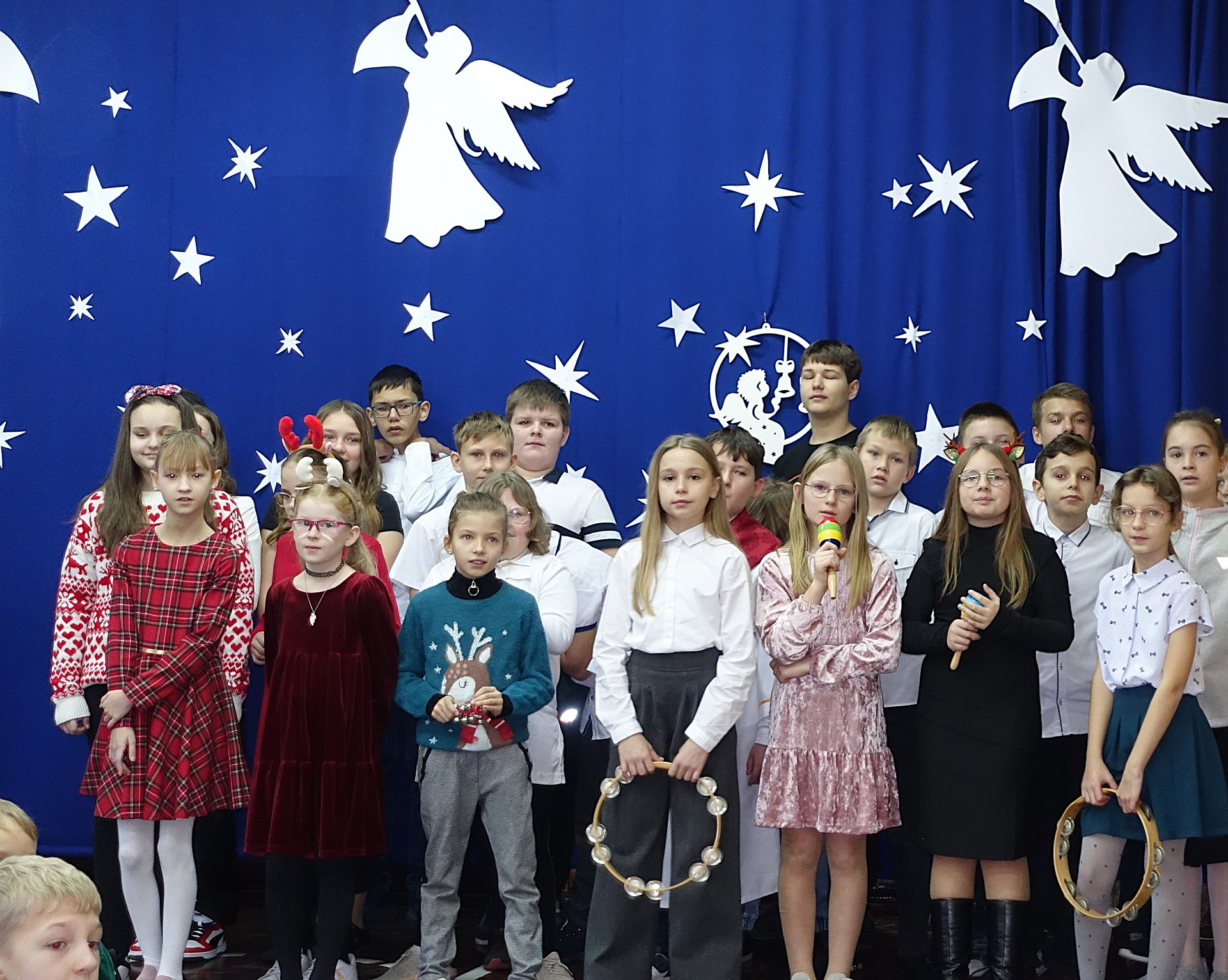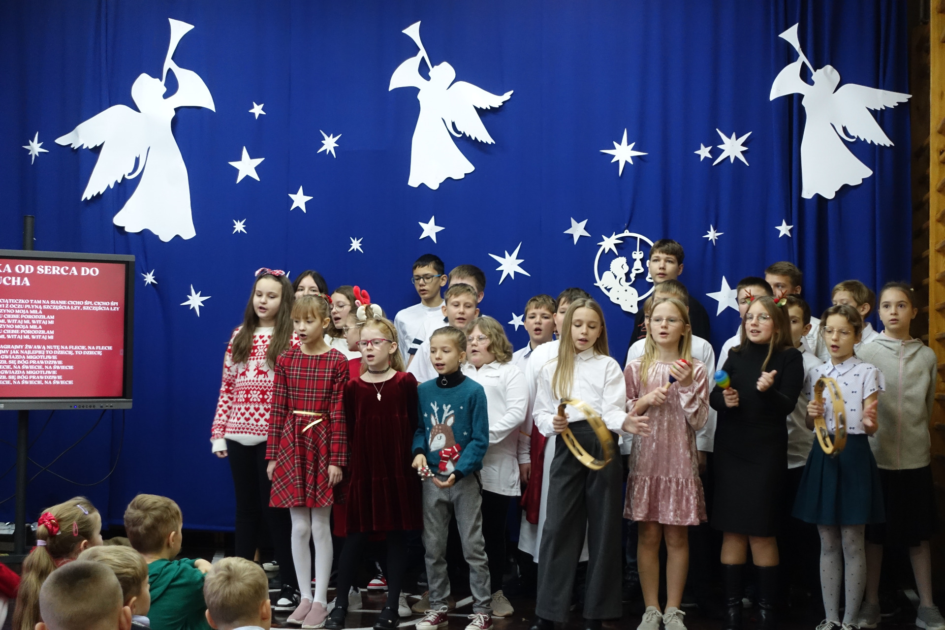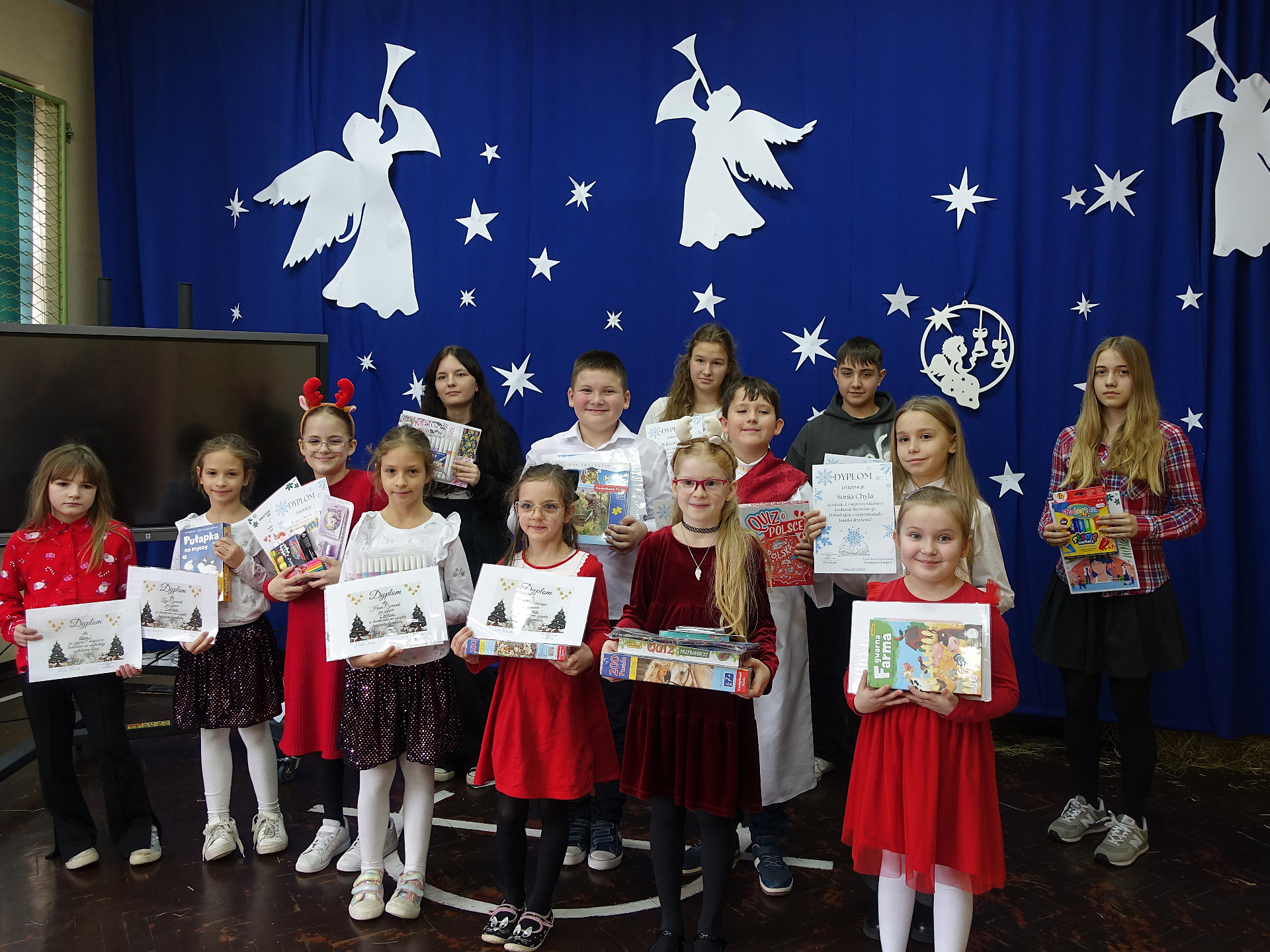 W dniu 20.12.2024 w naszej szkole przeżywaliśmy świętowanie Bożego Narodzenia. Klasy IV, V, VI przygotowały jasełka pt.: „Historia wnuka króla Melchiora”. Po jasełkach klasa V zatańczyła taniec z lampionami do piosenki „Noel” Katarzyny Cerekwickiej i TGD, następnie wspólnie kolędowaliśmy. Rozstrzygnięto konkursy: na najładniejszą szopkę bożonarodzeniową, na najładniejszą ozdobioną świątecznie klasę za co uczniowie otrzymali nagrody wręczone przez pana Dyrektora.