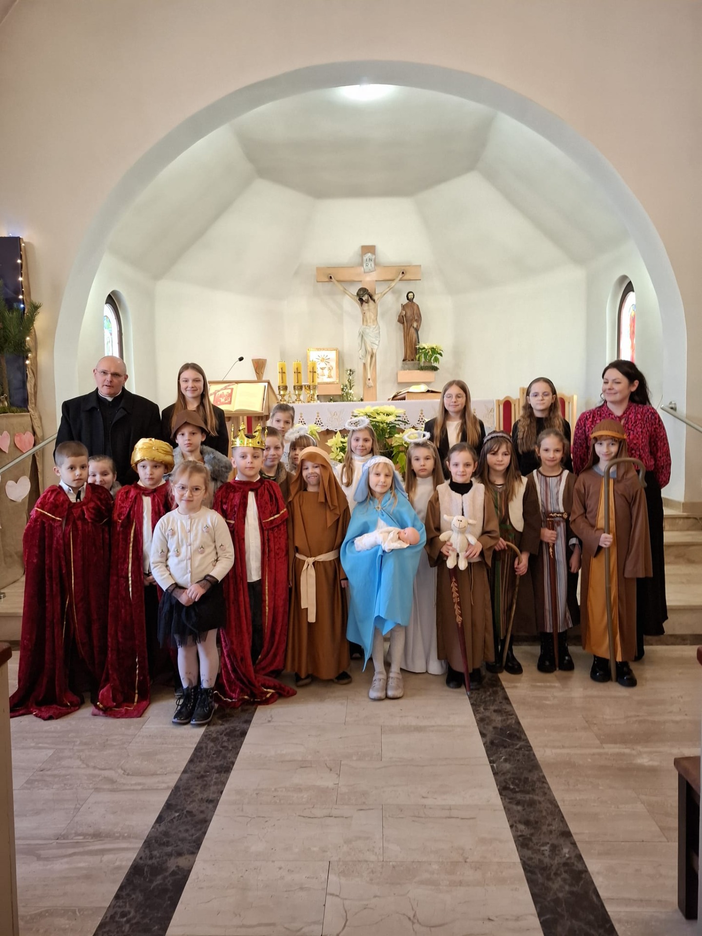 19 stycznia w kościele parafialnym pw. Świętego Józefa Robotnika w Myślinie, mali aktorzy z naszej szkoły pragnęli odtworzyć wydarzenia sprzed 2000 lat. Ta szczególna nocnarodzin Zbawiciela Jezusa Chrystusa została nam przybliżona m. in. przez aniołków, skromnych pastuszków oraz Mędrców ze Wschodu .