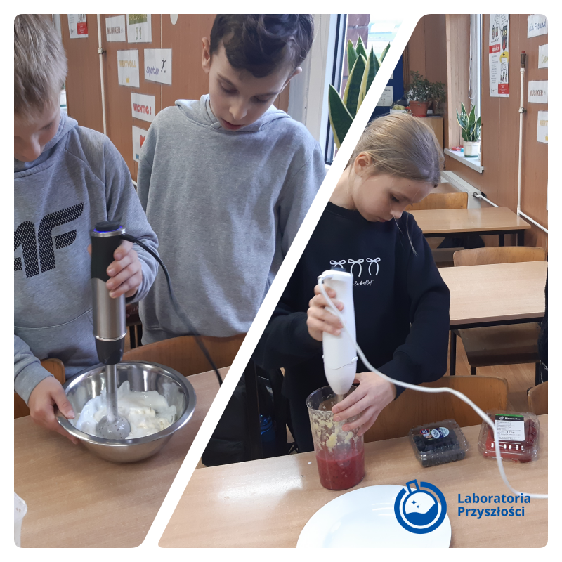 18 listopada na zajęciach z wychowawcą uczniowie klasy V z Panią Karoliną Skorupa-Niemasik przygotowali pyszne i zdrowe koktajle owocowe w celu promowania Europejskiego Dnia Zdrowego Jedzenia i Gotowania. Wykorzystali to tego zestaw stalowych misek kuchennych oraz blendery ręczne.