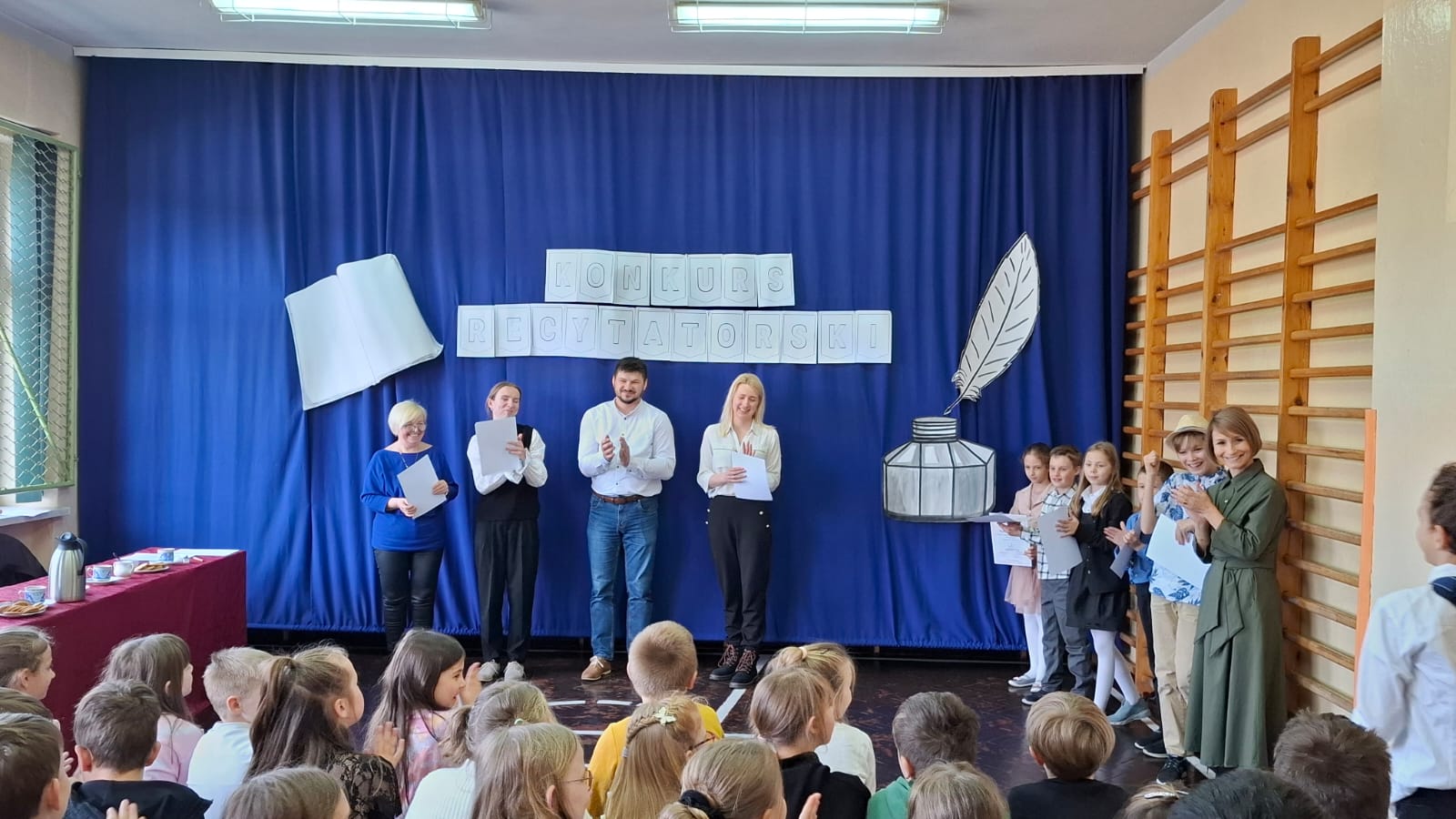 9 kwietnia 2025r. odbył się Szkolny konkurs recytatorski. Konkurs, który ma swoich szczególnych wielbicieli w klasach najmłodszych. Na scenie zaprezentowali się chętni uczniowie, którzy przygotowali recytacje wierszy polskich poetów. Jury w składzie pani Beata Nikolczuk, pani Renata Kudełka, pani Karolina Fidelus i pan Rafał Chwalczyk po wysłuchaniu wszystkich recytatorów w trzech kategoriach wiekowych postanowiło przyznać: