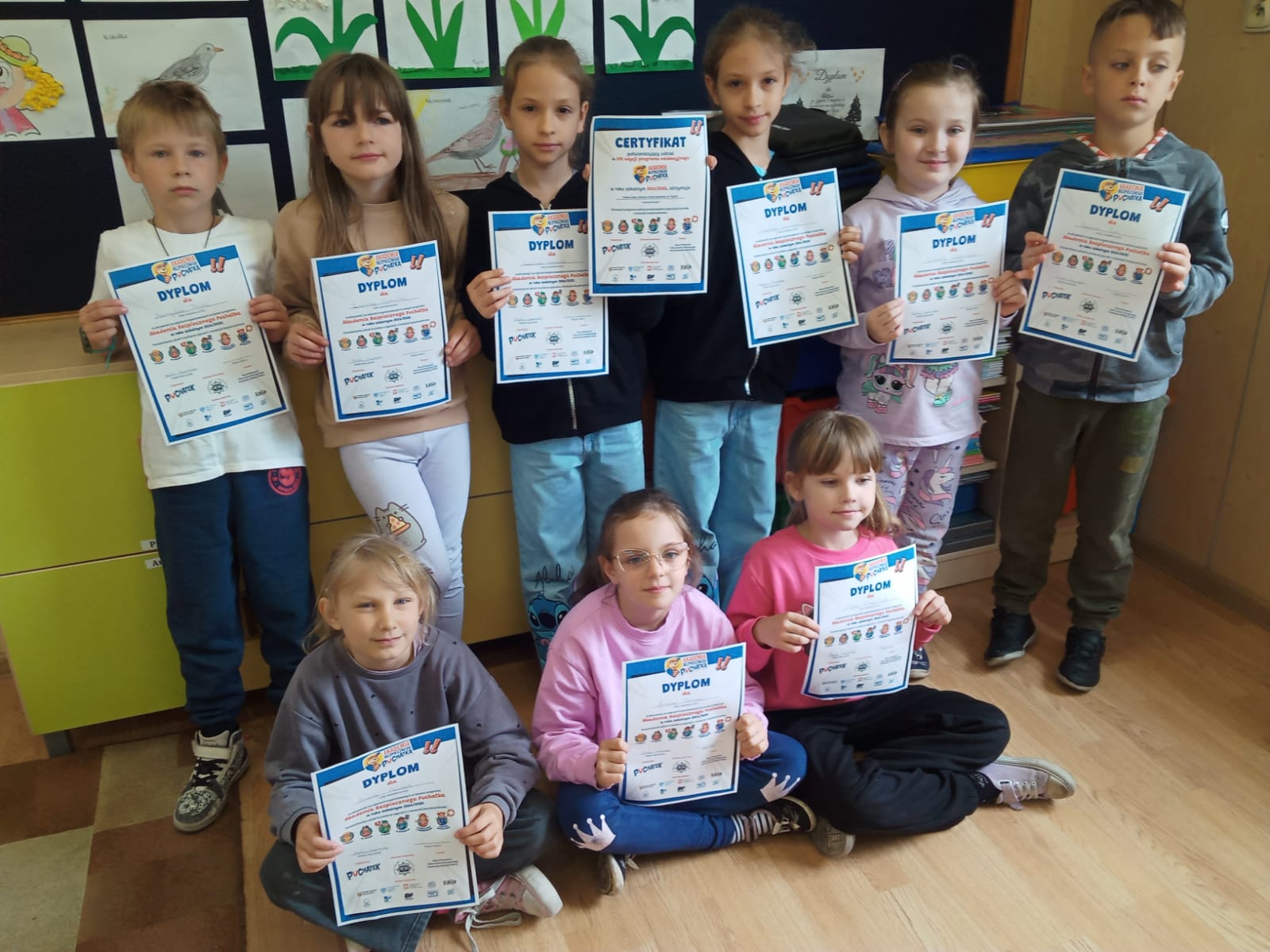 Uczniowie klasy pierwszej w roku szkolnym 2024/2025 brali udział w programie ,,Akademii Bezpiecznego Puchatka". Jest to ogólnopolski program edukacyjny, który wpisuje się w szczytną inicjatywę poprawienia bezpieczeństwa najmłodszych uczniów szkół podstawowych. Program porusza tematykę związaną z bezpieczeństwem dzieci w sześciu obszarach: w szkole, na drodze, w domu, w Internecie, w relacjach z rówieśnikami oraz podczas wypoczynku. Uczniowie uczestniczyli w zajęciach dotyczących bezpieczeństwa, uczyli się jak bezpiecznie i zgodnie z przepisami poruszać się po drodze, przechodzić przez jezdnię, jeździć na rowerze oraz bezpiecznie, a zarazem aktywnie i zdrowo odpoczywać w czasie wolnym. Dzieci poznały zasady dotyczące bezpiecznego i rozsądnego korzystania z Internetu. Podsumowaniem uczestnictwa w programie był udział wszystkich pierwszoklasistów w Ogólnopolskim Teście Wiedzy o Bezpieczeństwie rozwiązywanym on-line. W wyniku podjętych działań szkoła otrzymała Certyfikat „Akademii Bezpiecznego Puchatka” a pierwszoklasiści Dyplomy Bezpiecznego Puchatka.