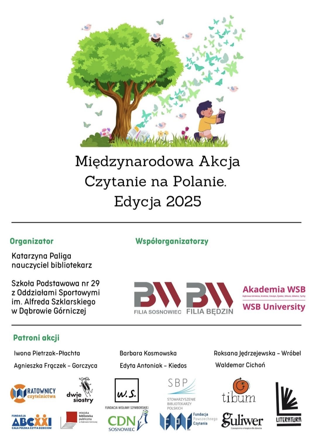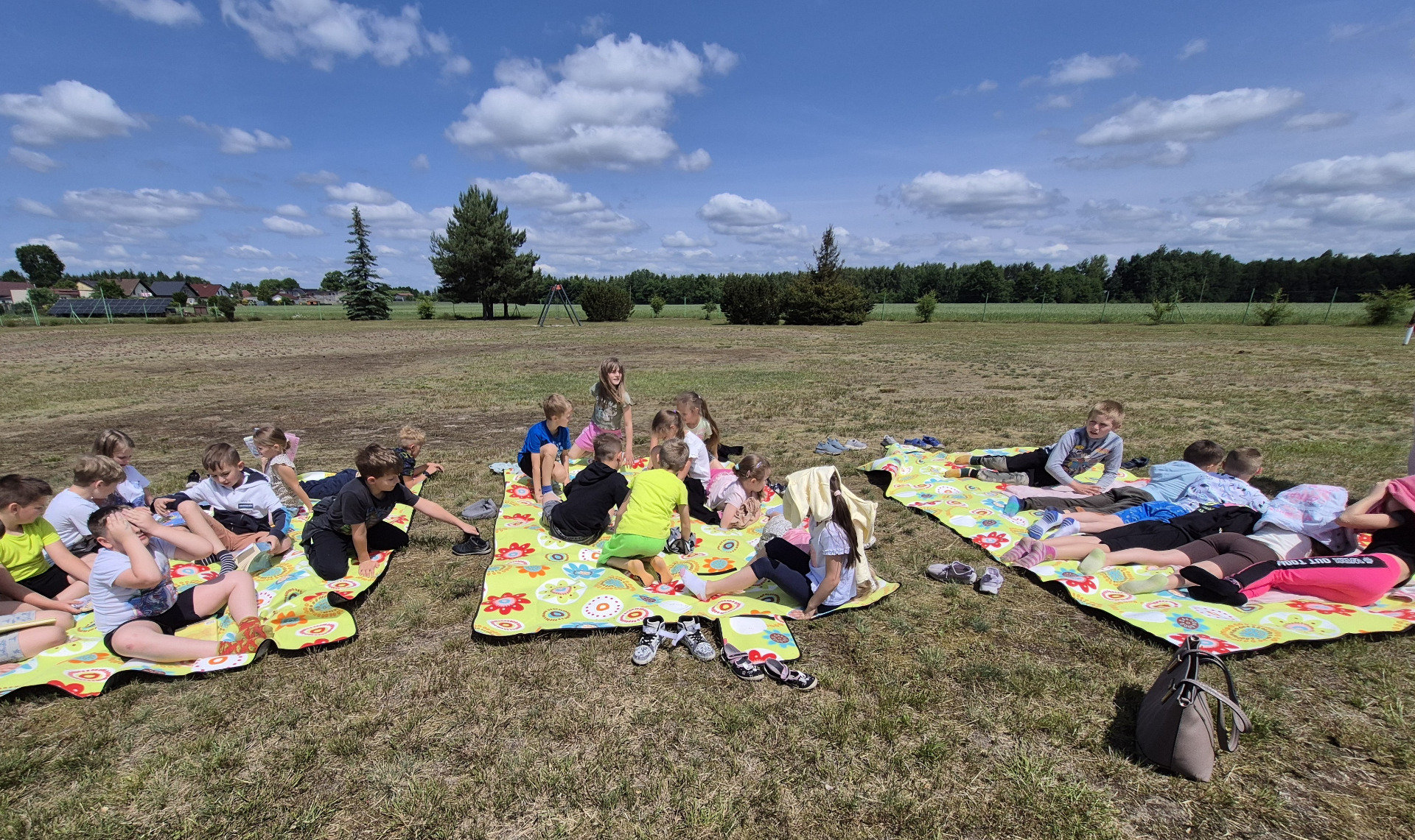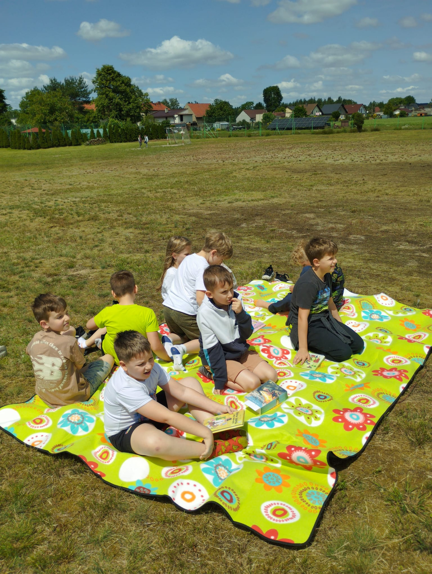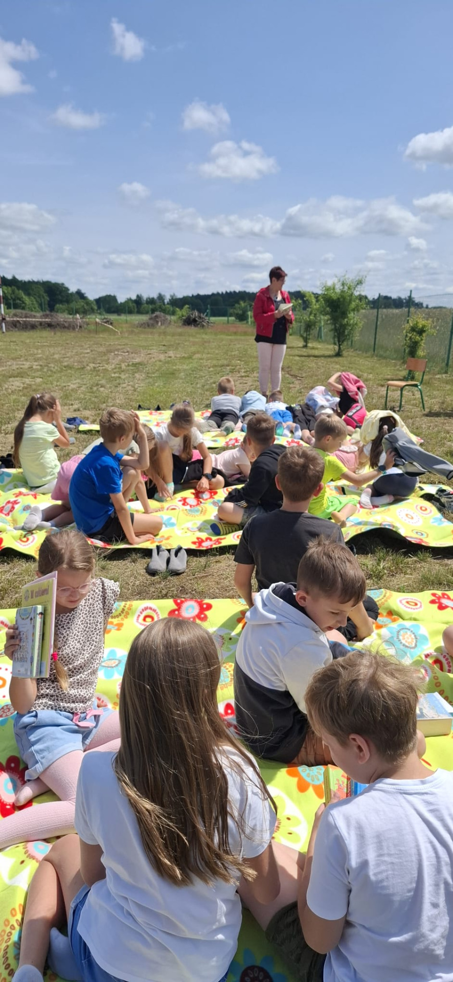13. czerwca uczniowie klas 1-3 wzięli udział w akcji "Czytanie na polanie". Do udziału w akcji zaproszona została bibliotekarka z Filii Biblioteki w Myślinie, która przeczytała uczniom książkę pt. "Szkoła na Dobrej". Następnie uczniowie podzielili się wrażeniami i przemyśleniami na temat wysłuchanego opowiadania oraz opowiedzieli o swoich ulubionych książkach. Głównym celem tej inicjatywy jest promocja czytelnictwa wśród dzieci oraz integracja lokalnego społeczeństwa dodatkowo zachęcanie uczniów do sięgania po książkę w każdej sytuacji i w każdym miejscu.