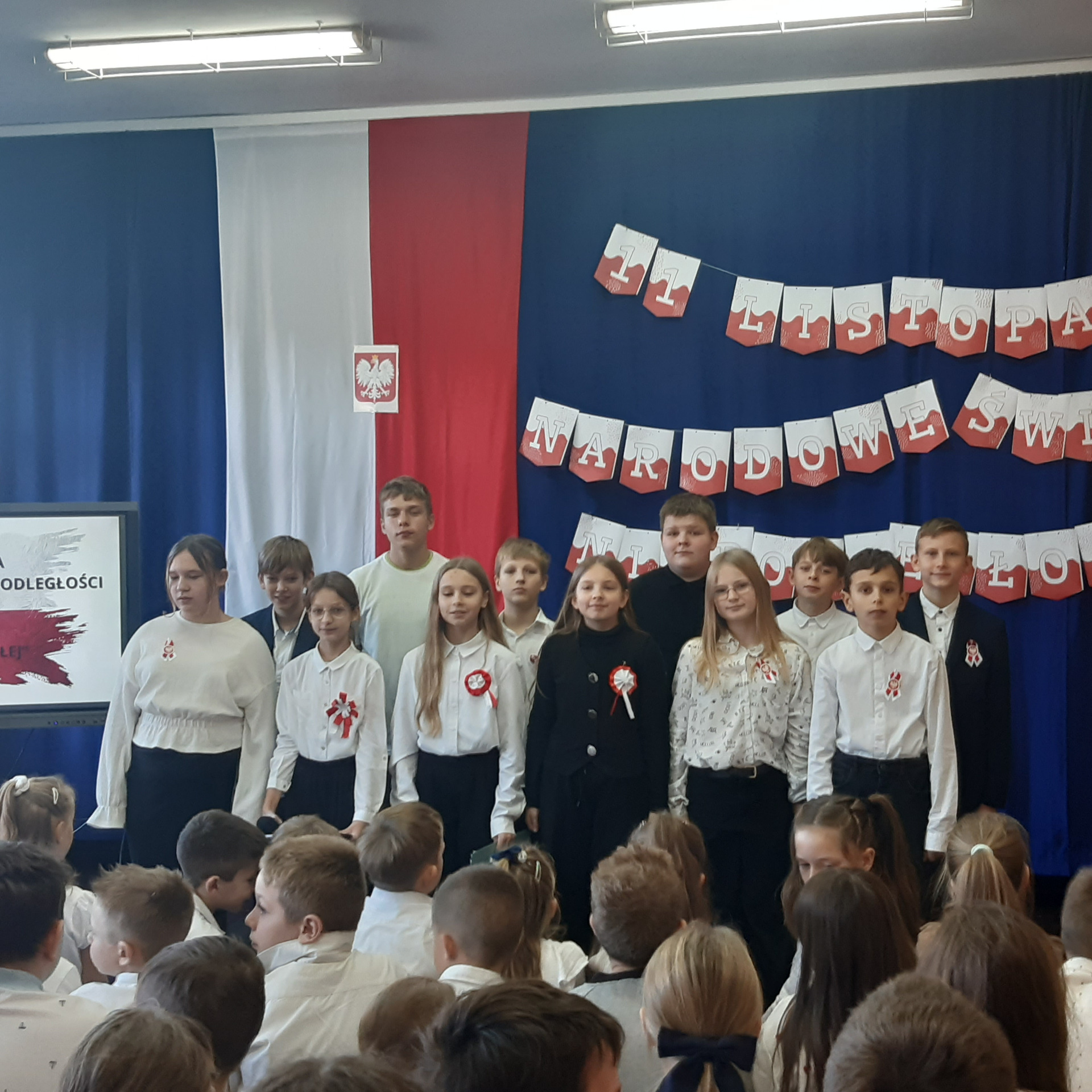 Dnia 7 listopada 2025 roku w naszej szkole odbył się uroczysty apel z okazji Narodowego Święta Niepodległości, przygotowany przez uczniów klasy VI pod opieką wychowawcy oraz nauczyciela muzyki.