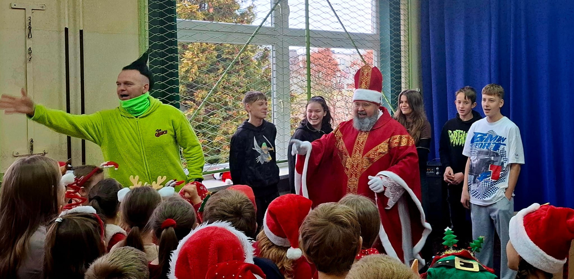 5 grudnia w naszej szkole panowała niezwykła atmosfera – odwiedził nas sam Święty Mikołaj, a wraz z nim jego pomocnicy oraz Grinch, który wywołał wiele uśmiechów.