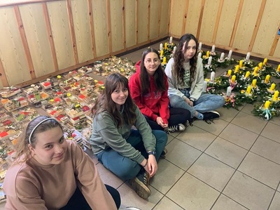 Wolontariusze razem z Caritas przygotowują stroiki...