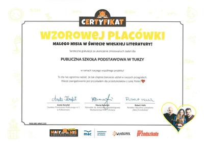 Mały Miś w Świecie Wielkiej Literatury - certyfikat